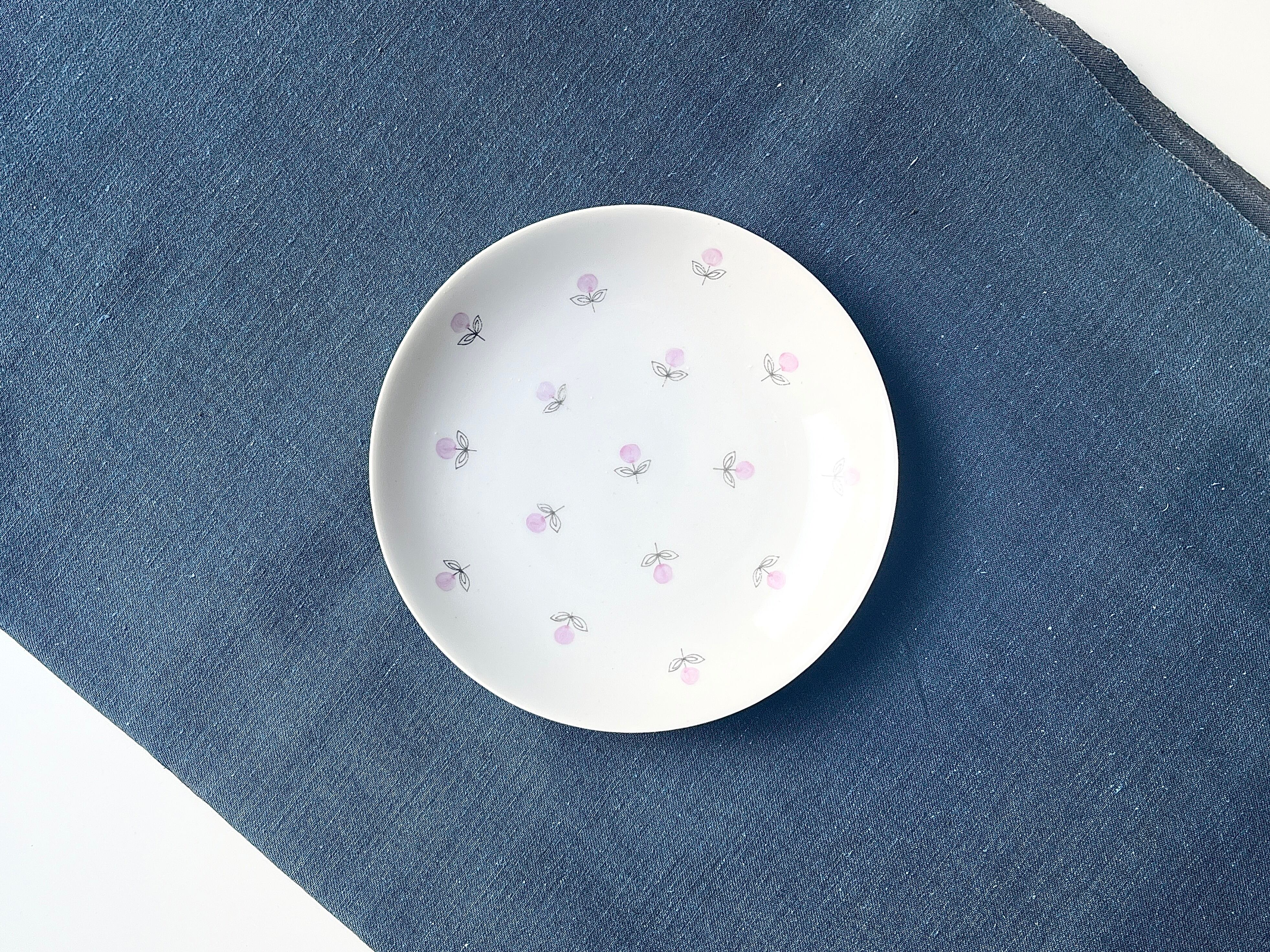 プレート表面には優しい色調の小花がリズミカルに配置されています。