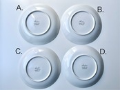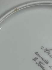 A~Dいずれも、表面に重ねて保管する際に生じた薄い高台擦れ等が僅かにみられる物の、使用に伴うカトラリー傷や目立った傷汚れは見当たりません。使用あるいは製造段階からの極わずかなペイントロスが見られますが、その程度も1、2か所と軽微なもので、とてもきれいなコンディションだと思います。