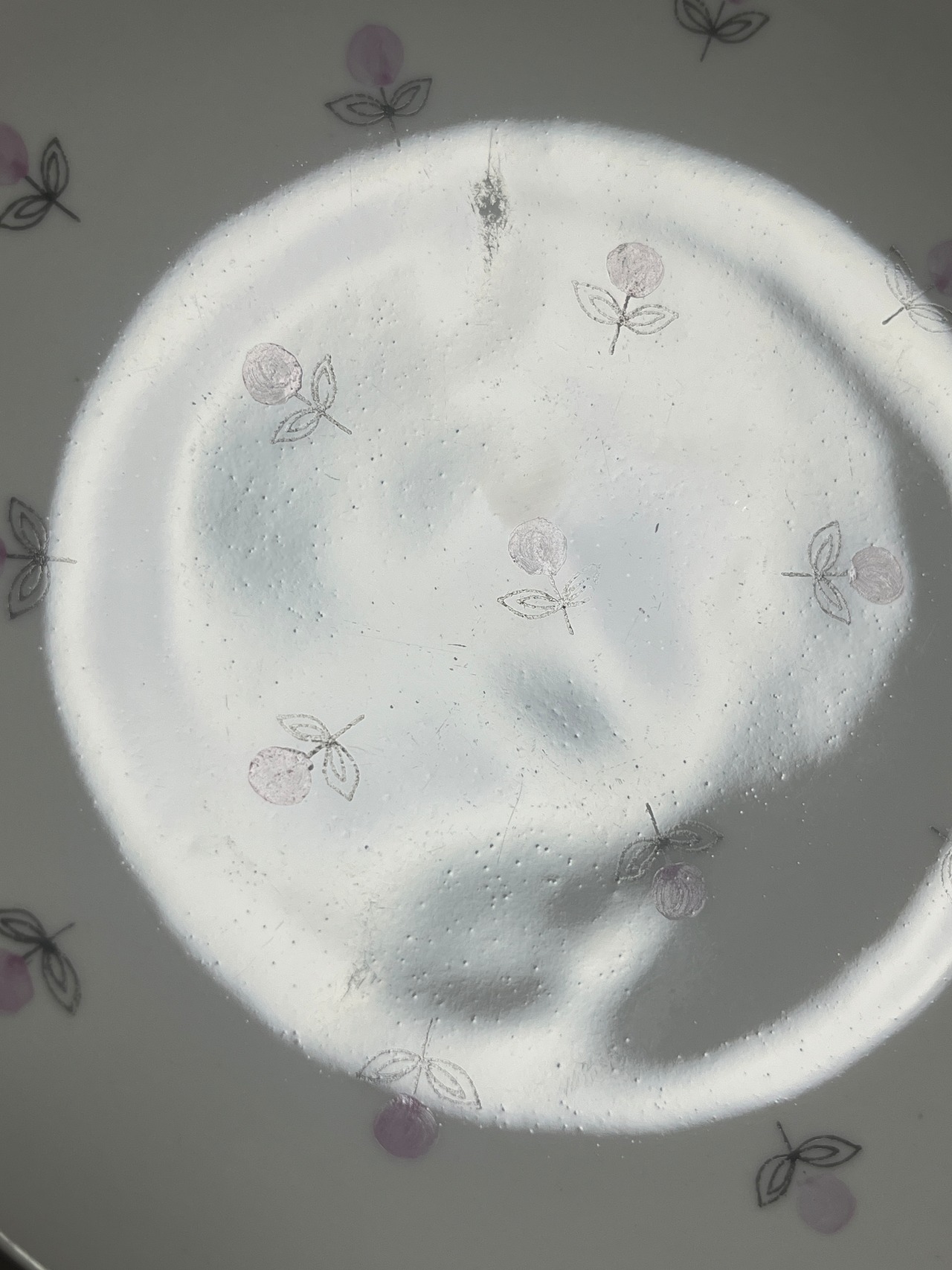 その他製造段階からのものとして、高台の削れ、ペイントのムラ、僅かなピンホール、釉薬下の付着物等による極微細な突起、微細な色飛び、黒点等が見られます。