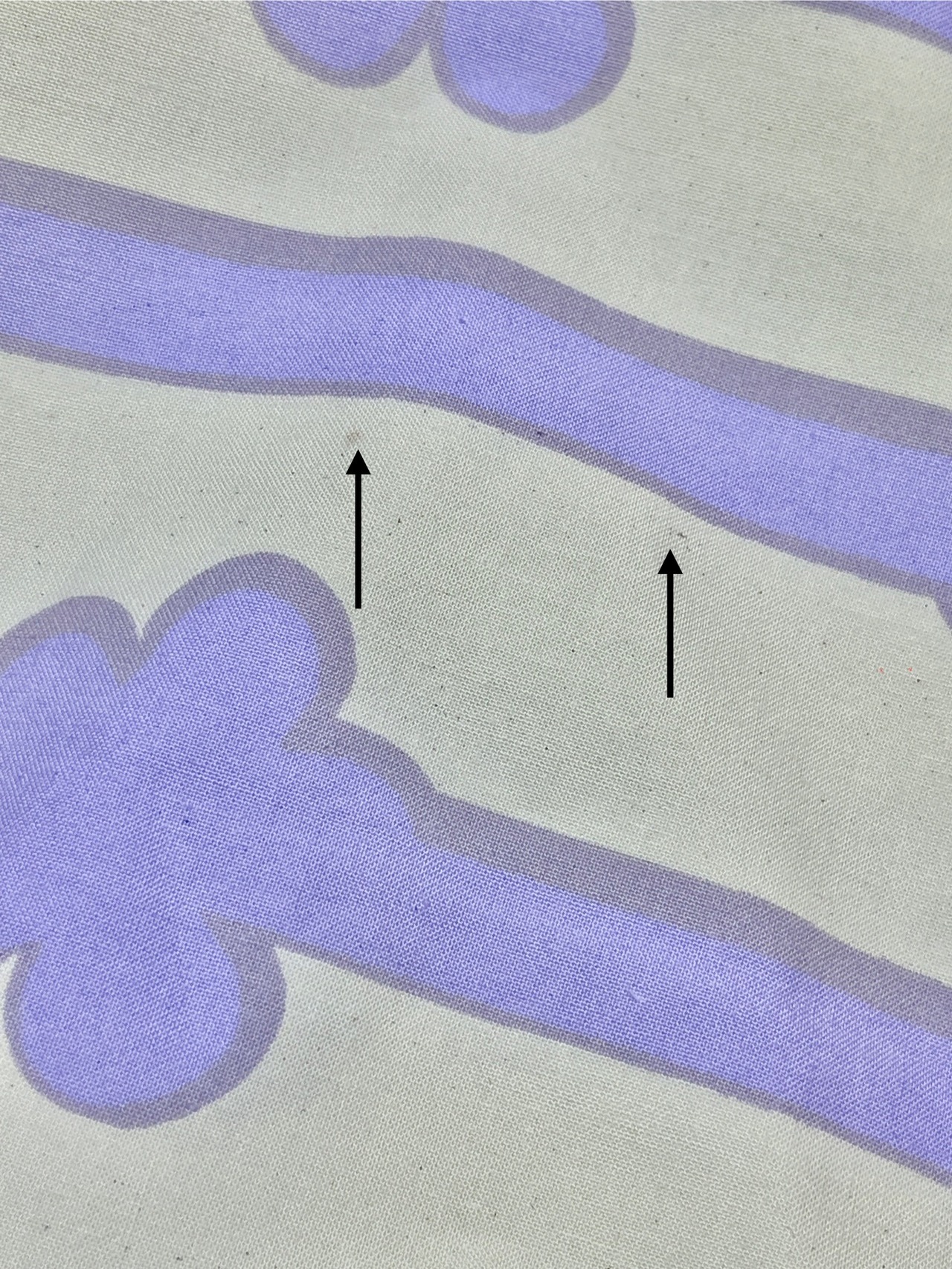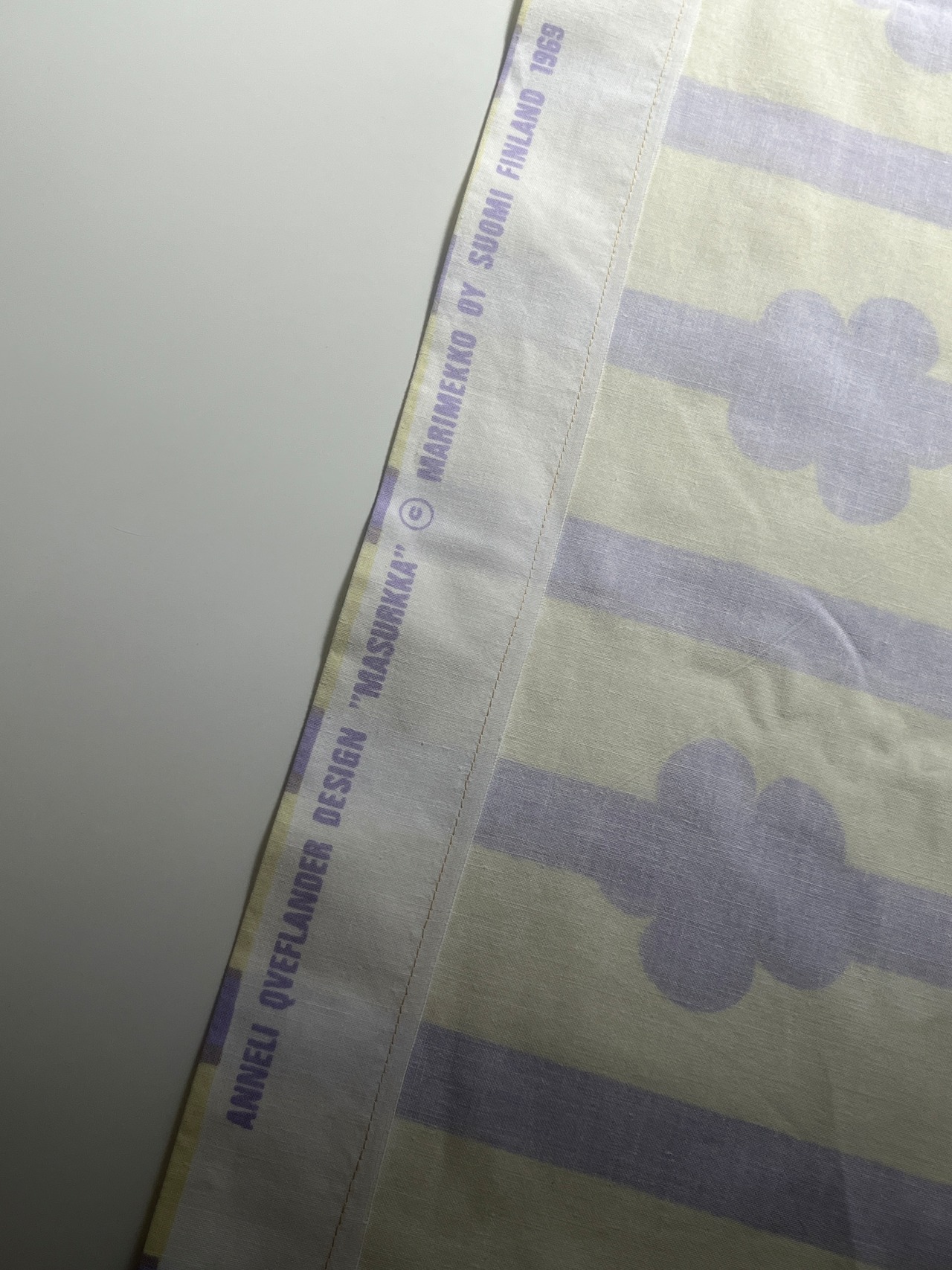 なお、特筆するほどの物ではなくとも、素材上どうしても出来てしまう僅かなネップ(生地を作るための撚糸の小さなコブ)や微細な版ズレが見られることがございます。この時代のマリメッコ製品の特性としてご理解ください。