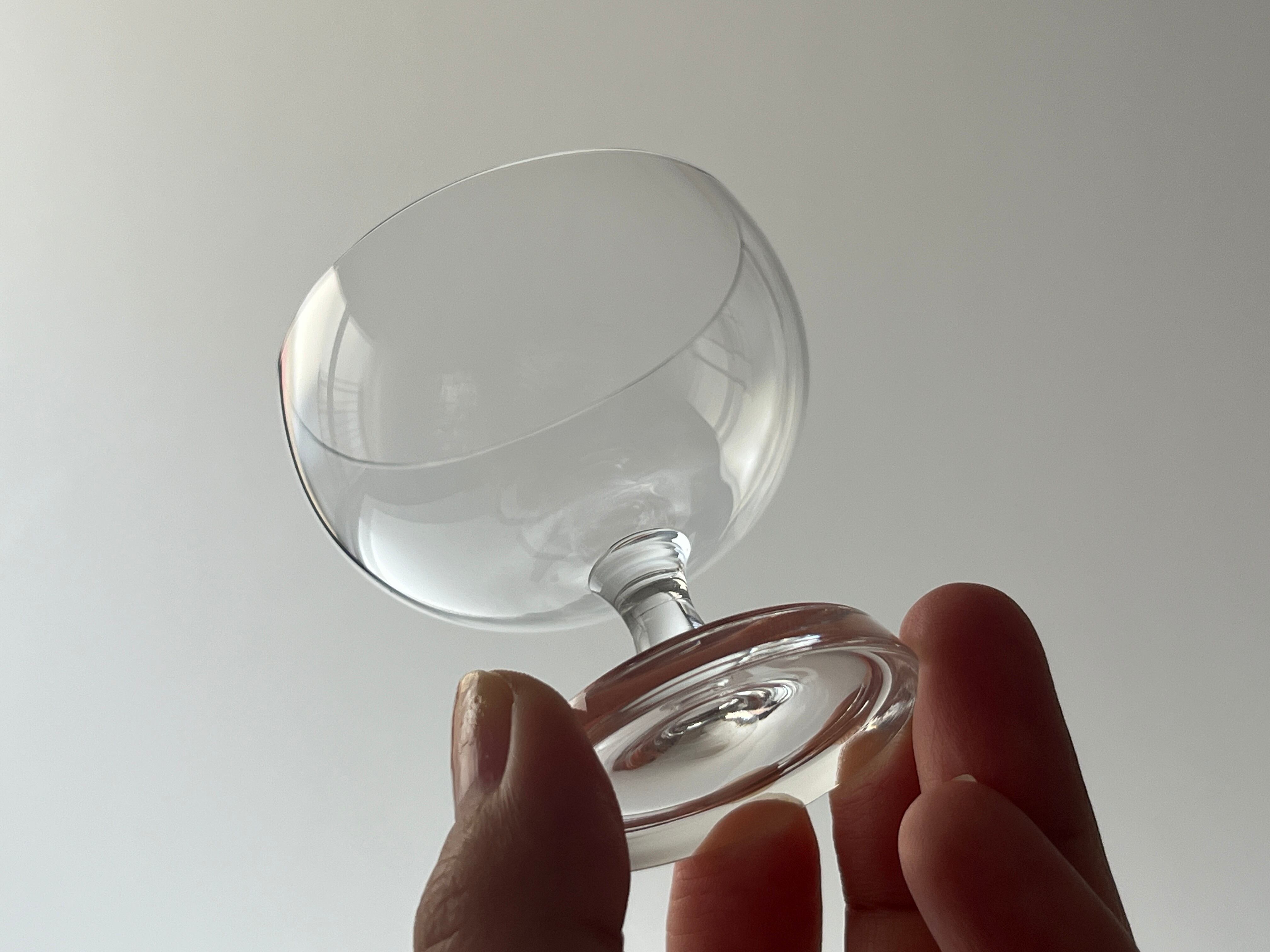 製造段階のものですが、フットの裏側に製造痕による筋や微細な気泡のようなものがございます。また、僅かな気泡やグラスの口の処理によって、口縁部に微細な窪みや突起のようなものが生じることがございます。