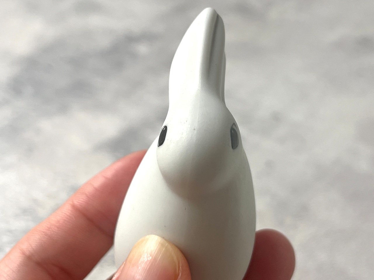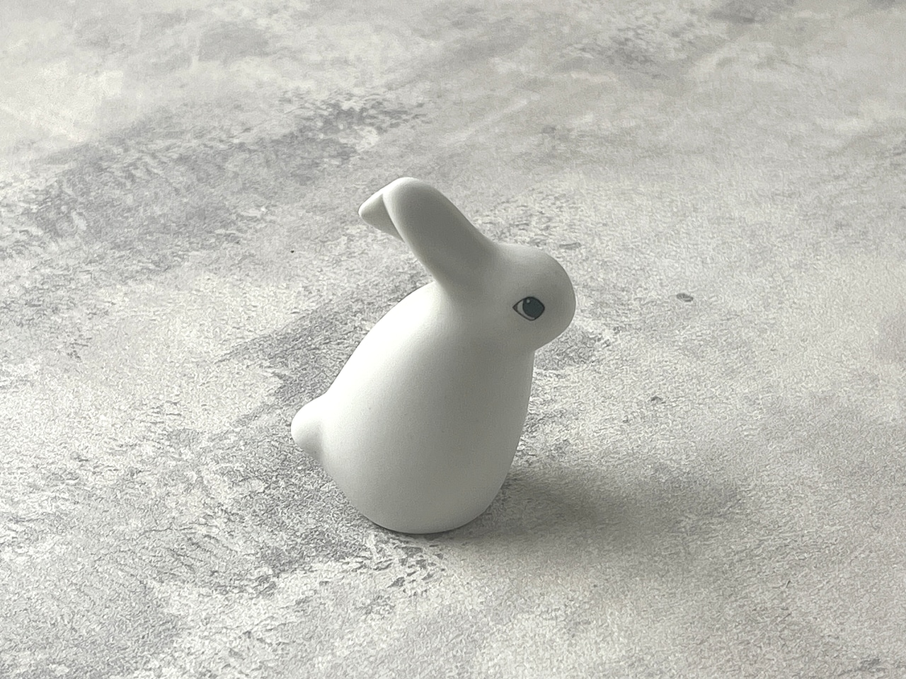 指先でつまめるほどのかわいいサイズのバニーは、一つ一つ丁寧に手色彩で白いマットな釉薬を掛けて仕上げられていて、白く柔らかなうさぎの毛並みを感じるような優しい仕上がりです。