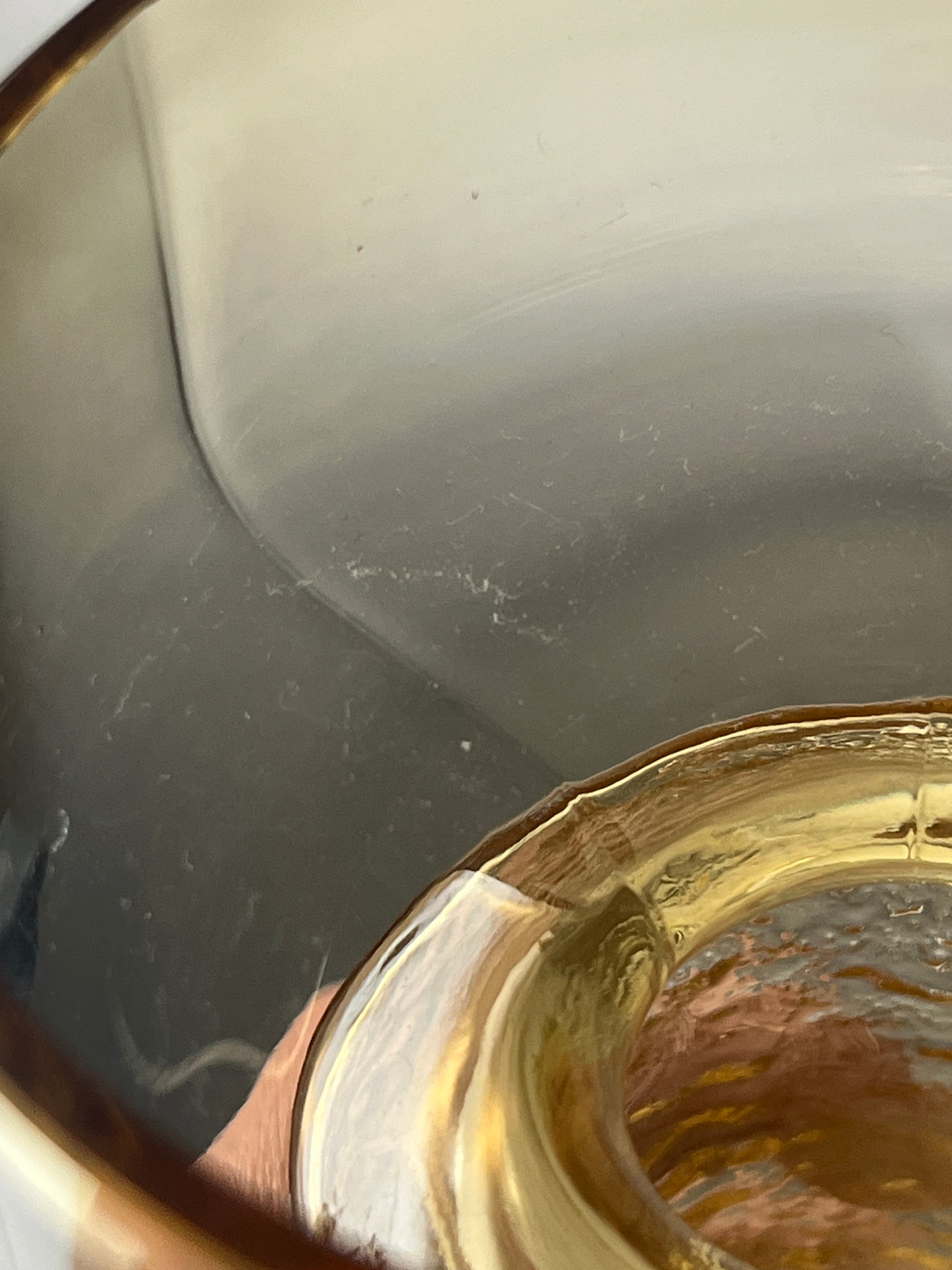 なお、口縁部分はガラスをカットして研磨する仕上げ法のため、研磨が甘くテーパーを取り切れていない箇所はややざらつき等がございます。
