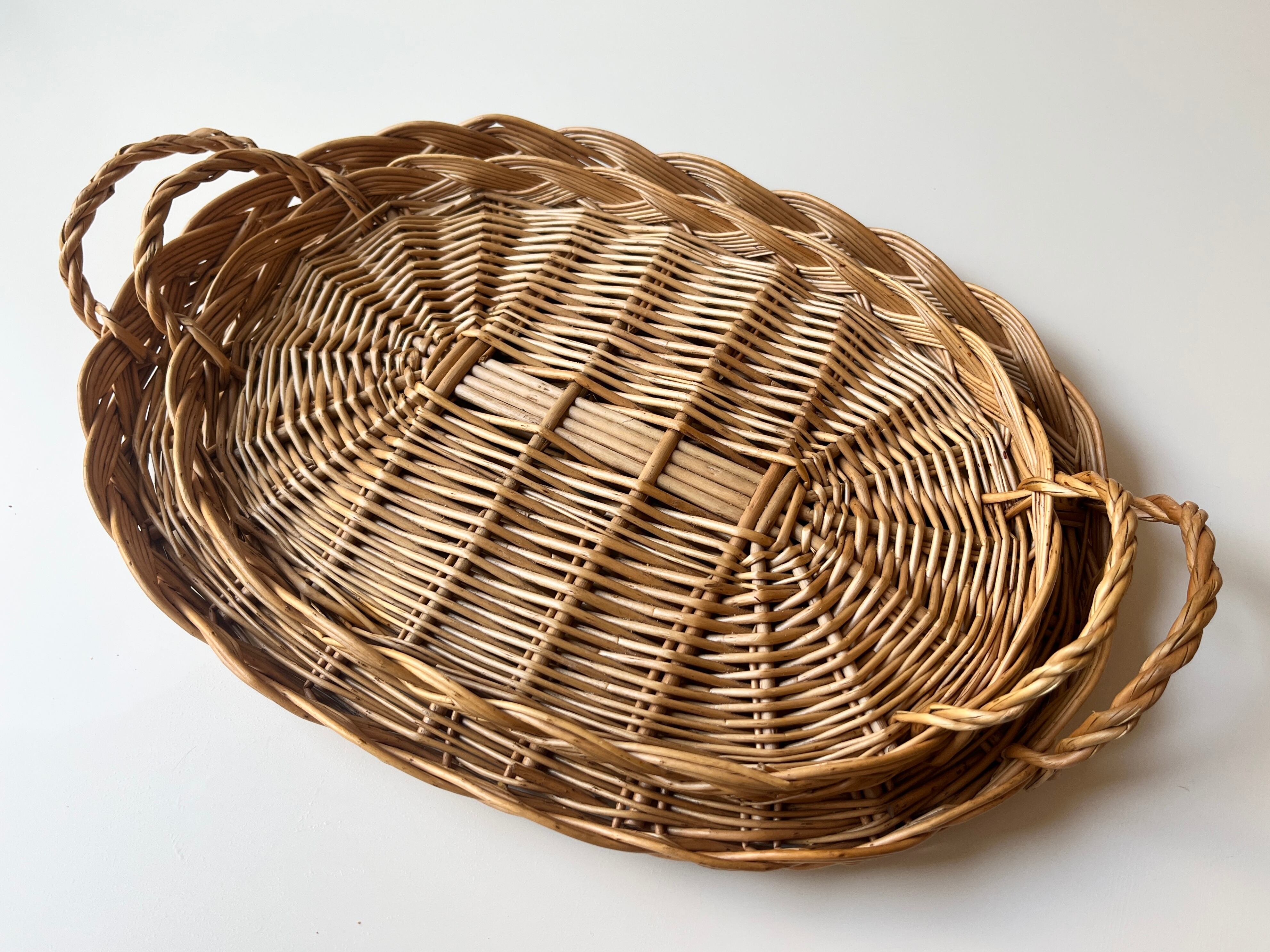 【ご予約品】フィンランドで見つけた 持ち手つきのヴィンテージバスケット (オーバル型 二点セット)