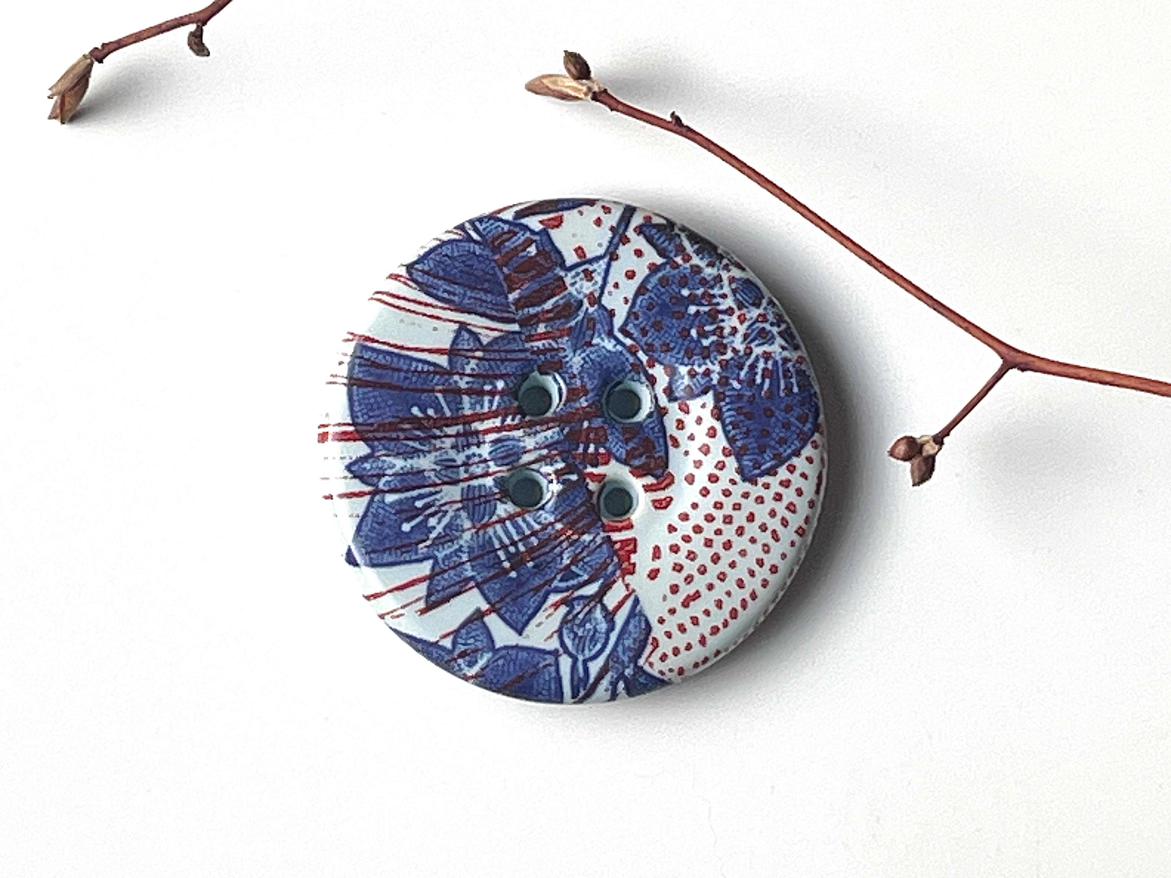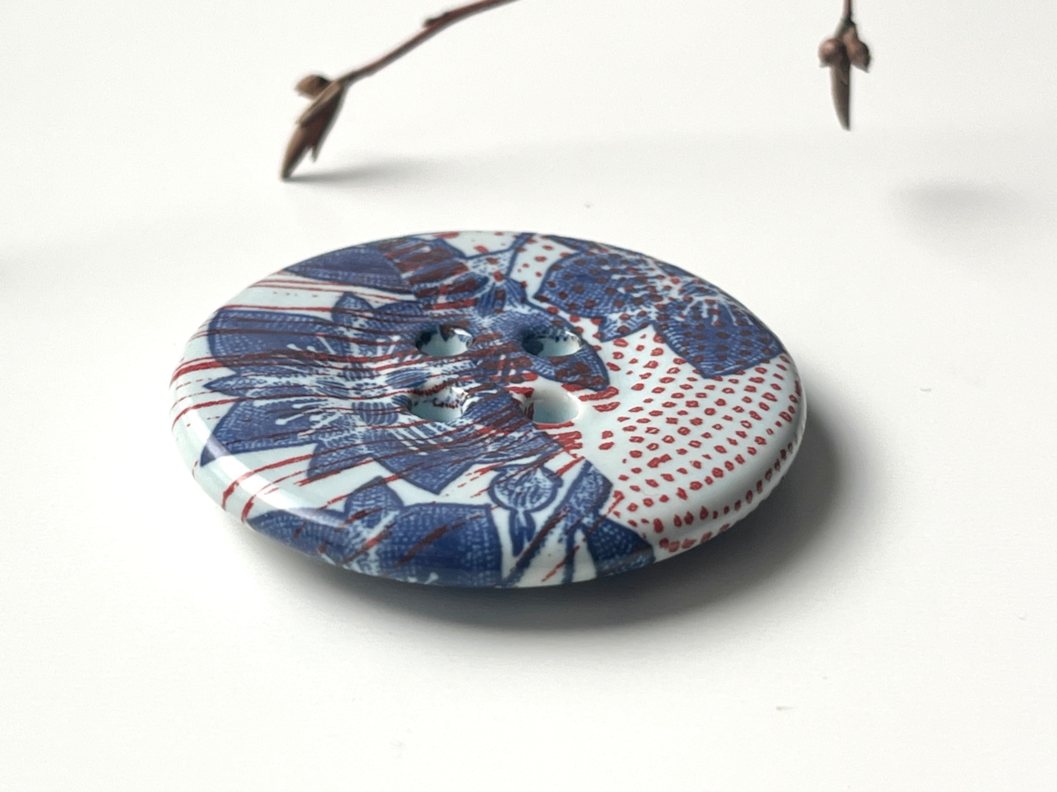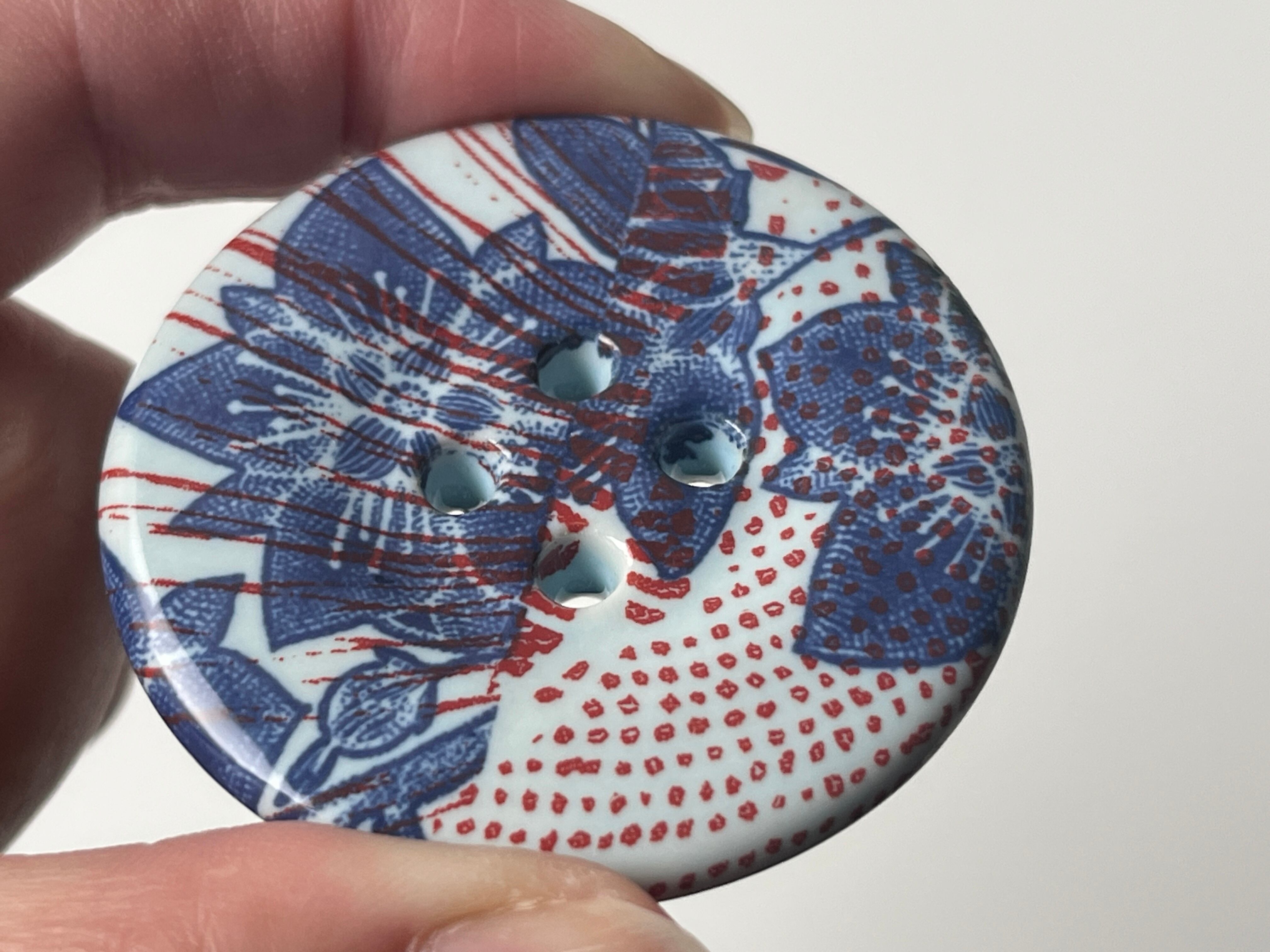 【Heini Riitahuhta】 Giant Korunappi(淡い水色/青花柄、赤模様)/ ヘイニリータフフタ / コルナッピ ジュエリー ボタン / Arabia Art Department