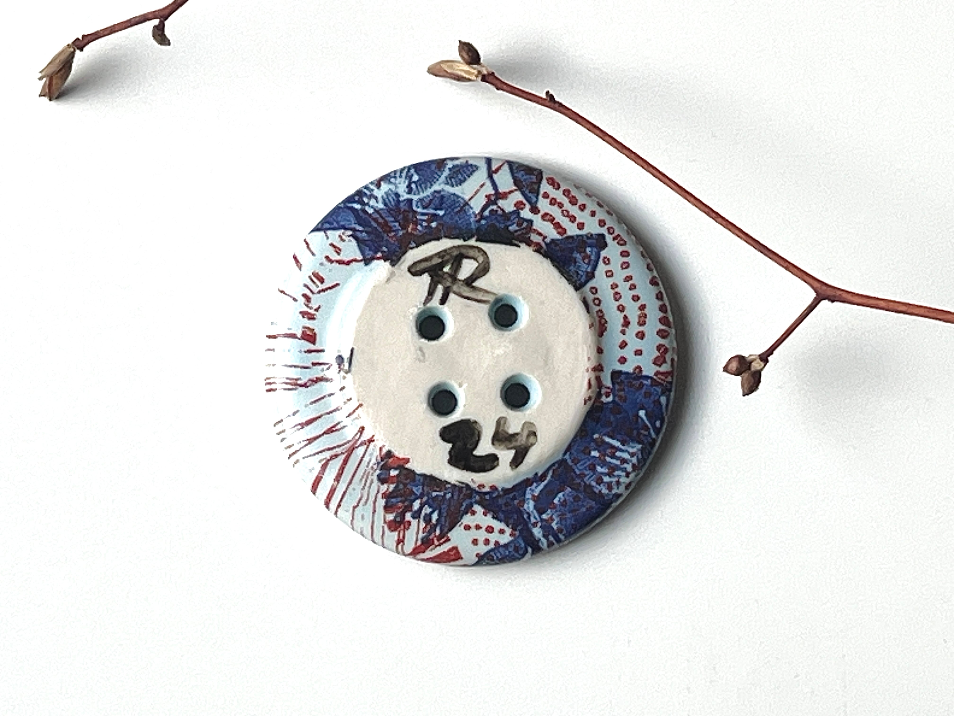 手仕事で仕上げた、ボタン型の小さなアートピースです。