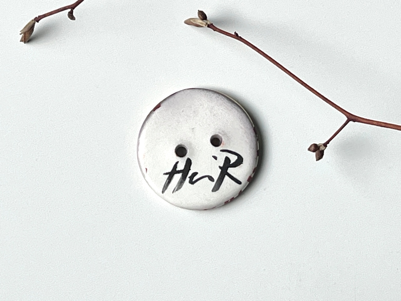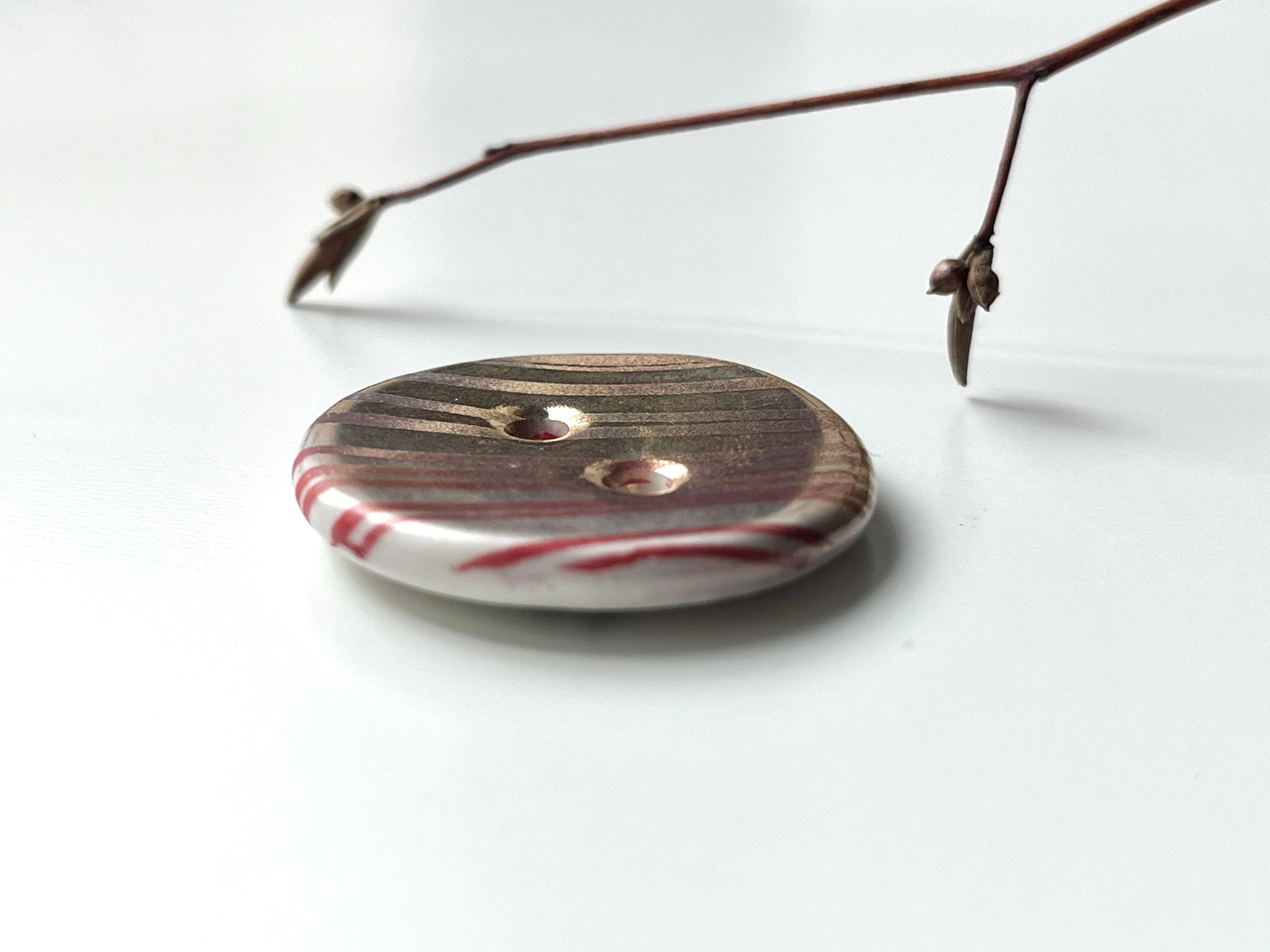 手仕事で仕上げた、ボタン型の小さなアートピースです。