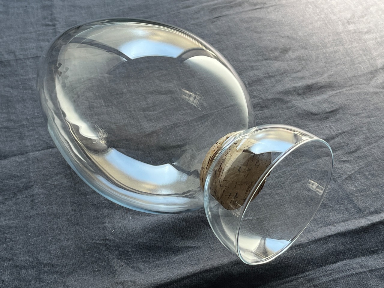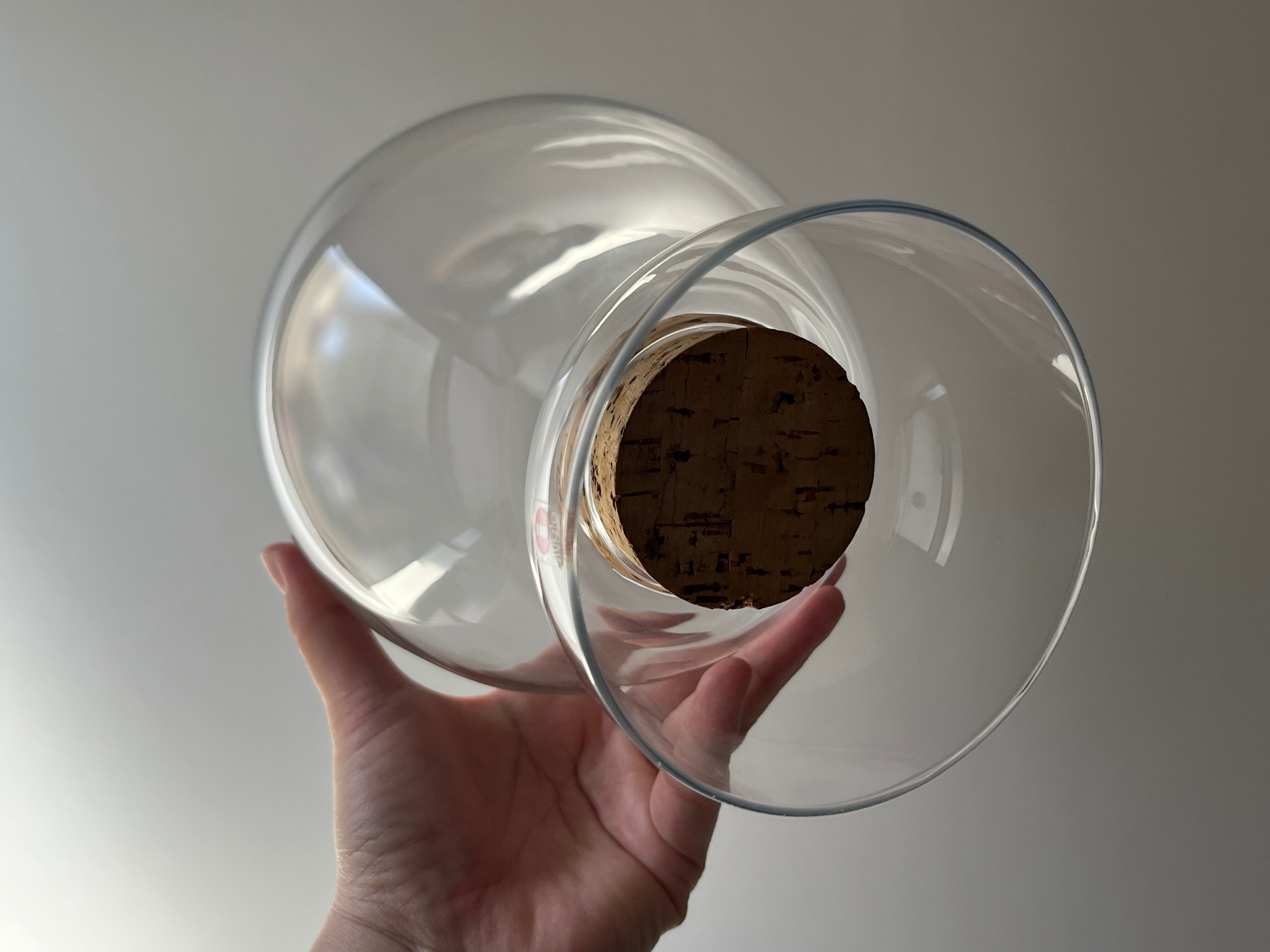 ジャーは内容物を詰め込み、コルクの蓋をして逆さに置く仕様です。