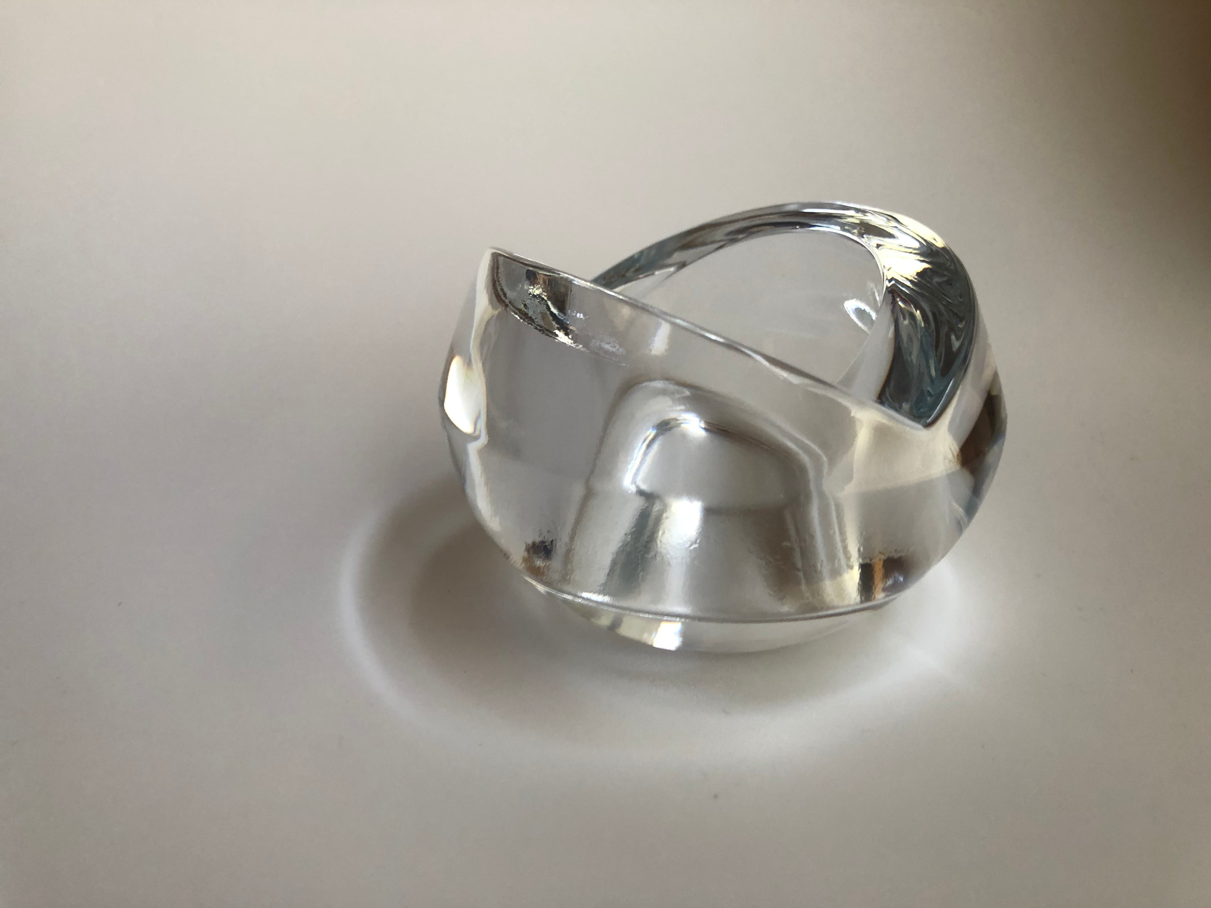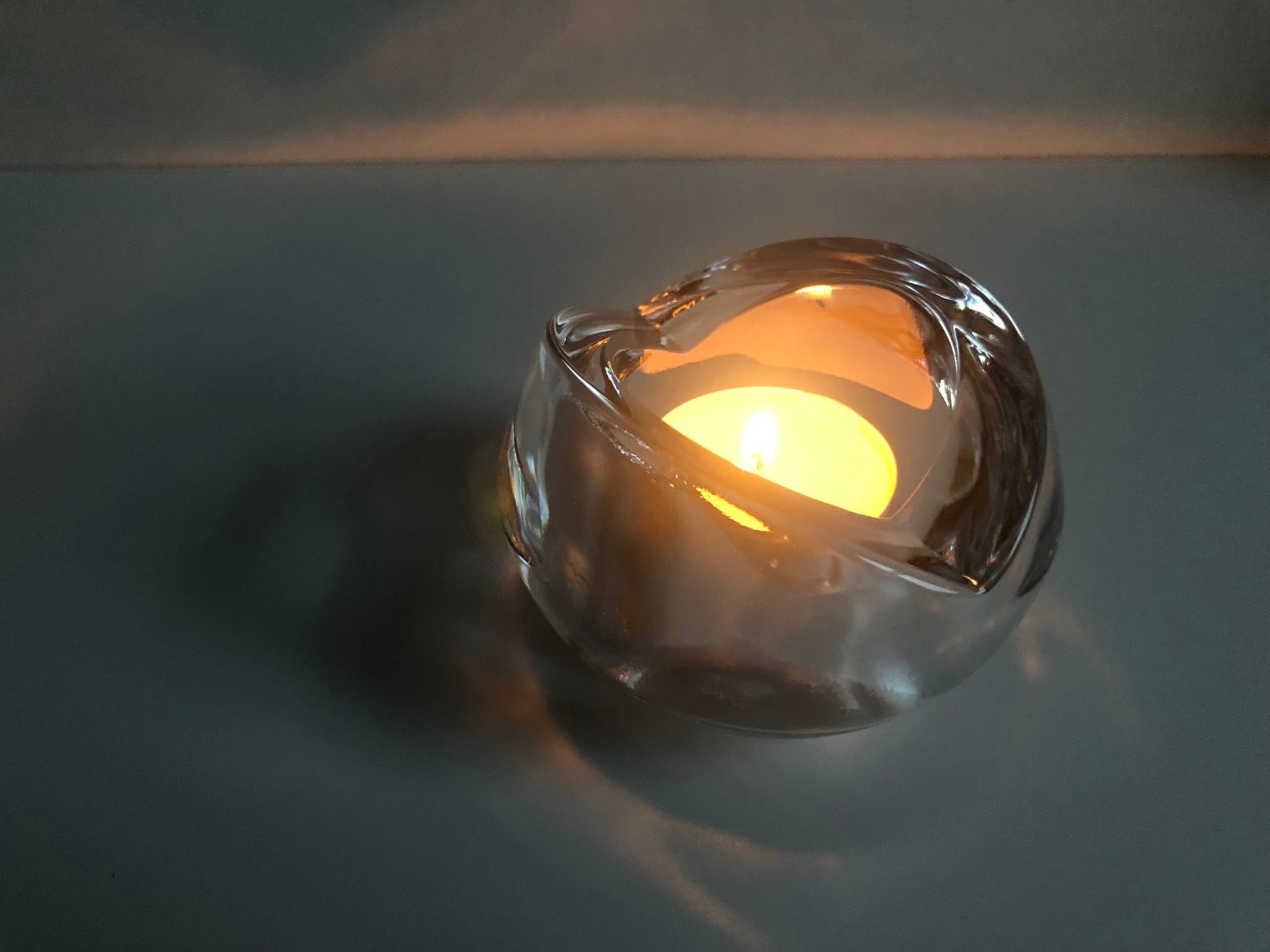 非常に分厚いガラスの作品で、キャンドルを入れた際