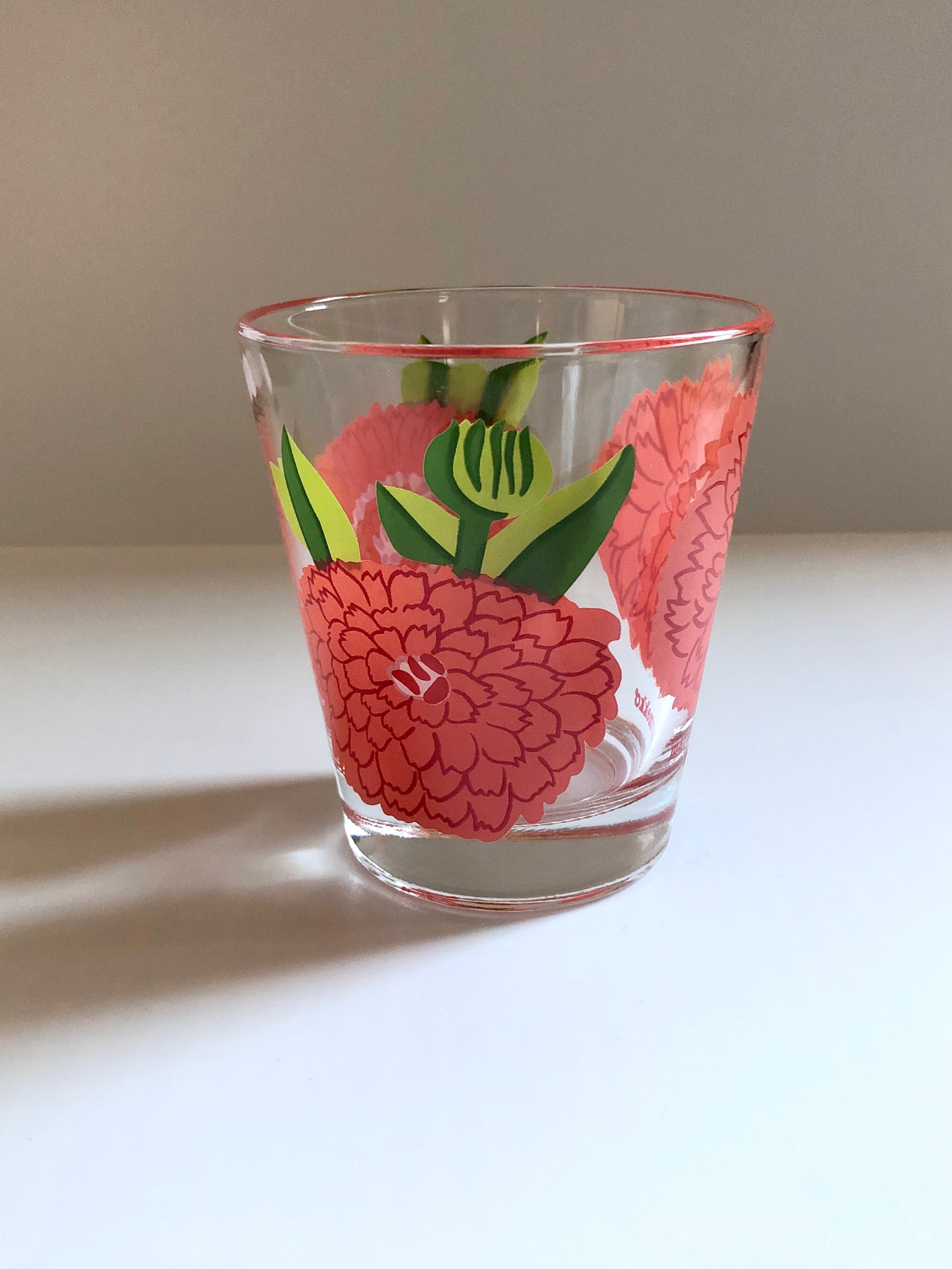マリメッコで最も有名なテキスタイルウニッコを生み出したマイア・イソラが描く、赤いマリゴールドの花はやはりとてもエネルギッシュで、見ているだけで元気が出ます。
