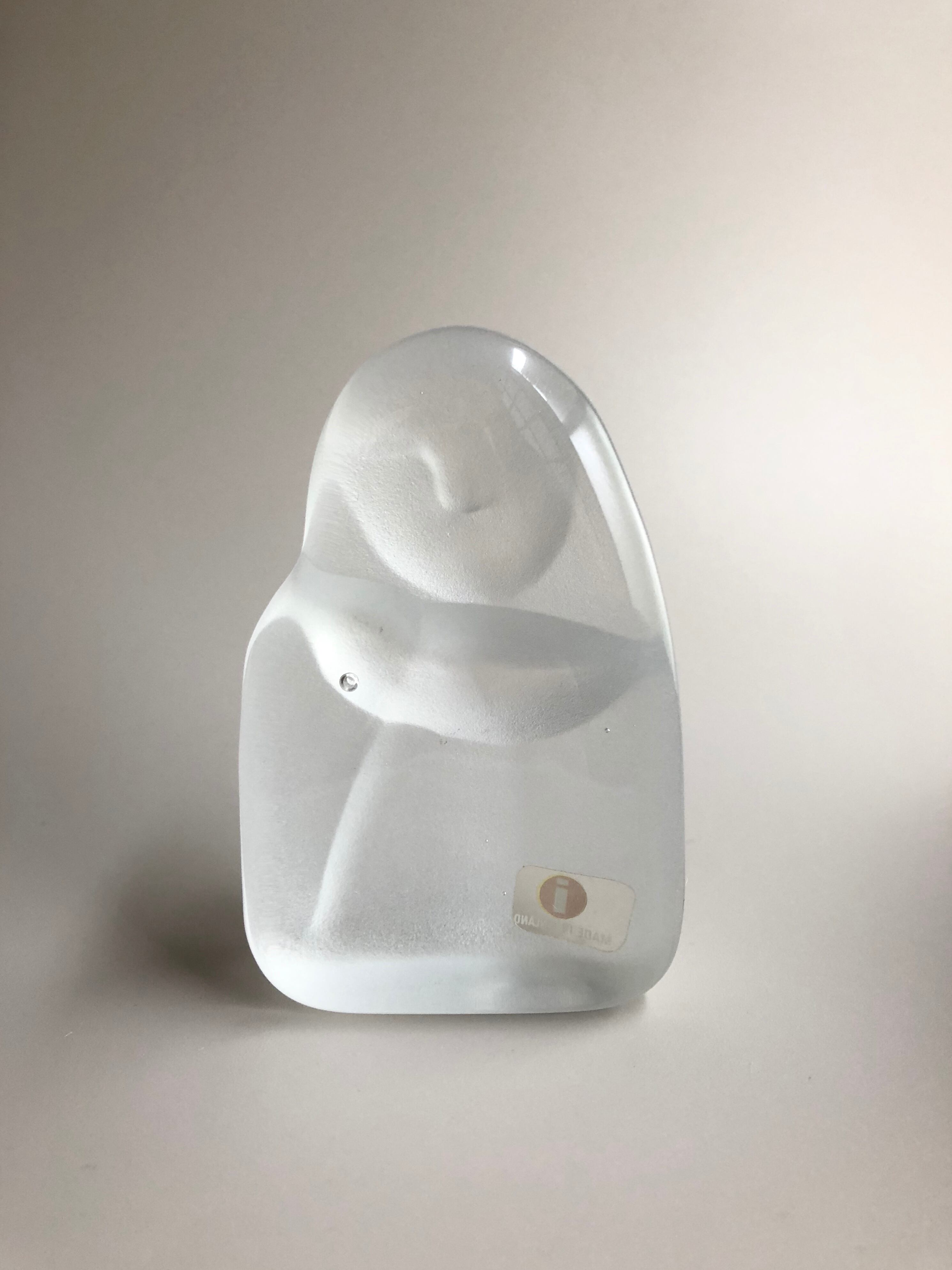 子を抱いた母の姿をフロストガラスで表現し、ガラスでありながらなんとも柔らかな作品に仕上がっています。ヨルマ・ヴェンノラらしい優しい雰囲気の素晴らしい一品です。
