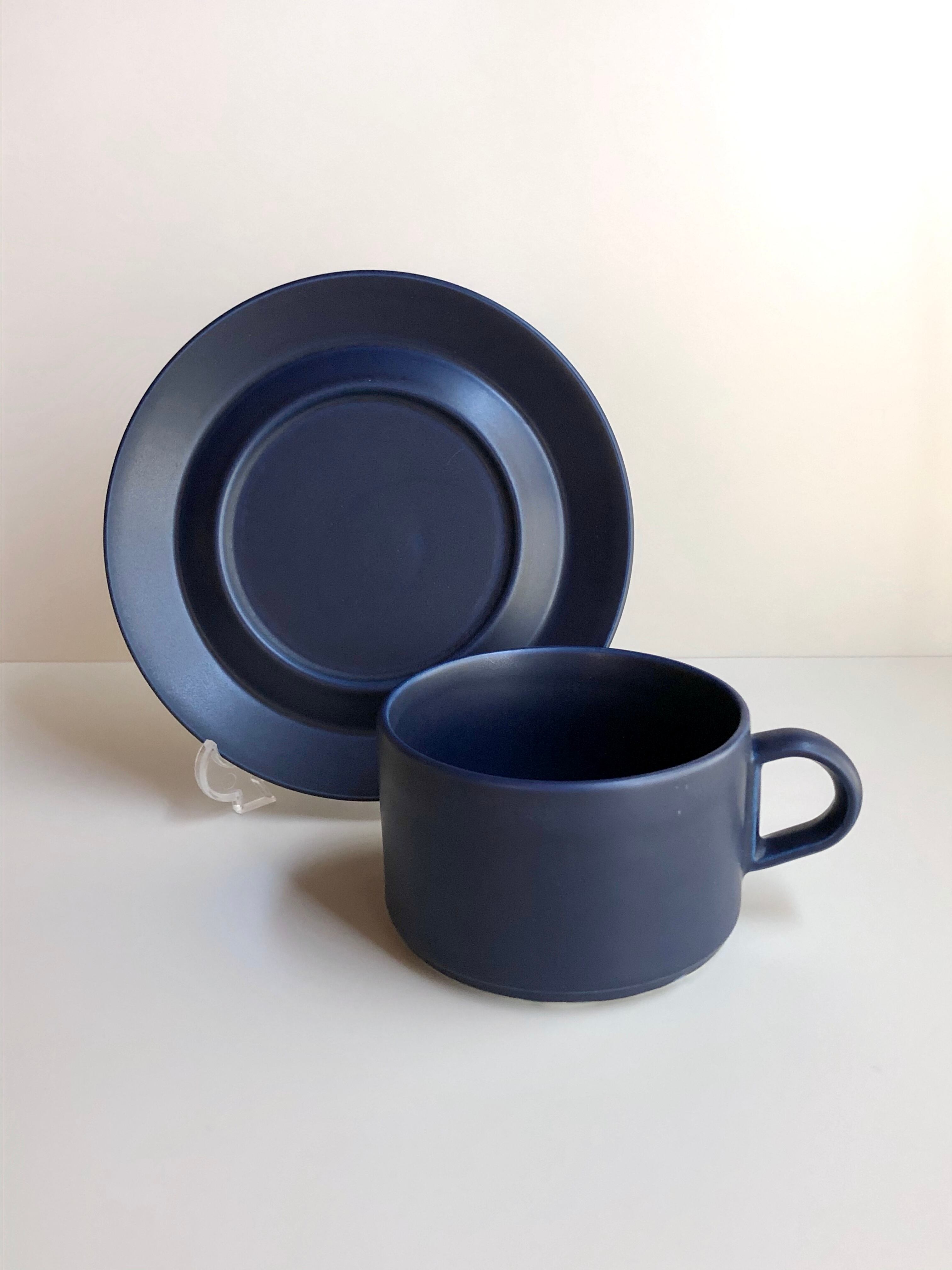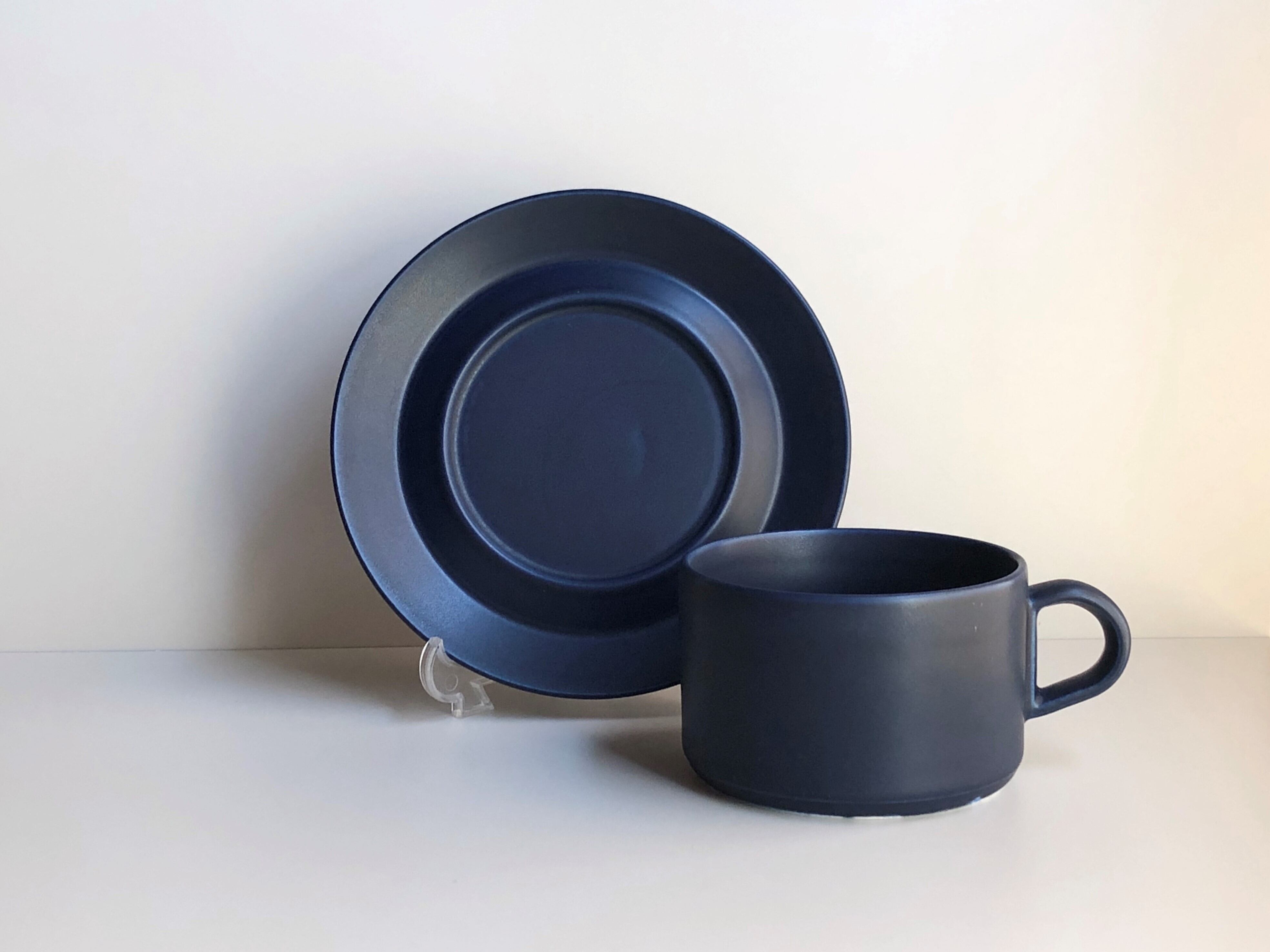 特徴的なソーサーの凹凸が面白く、直線的なフォルムを深いブルーのマットな釉薬で仕上げた姿が最高にクールです。