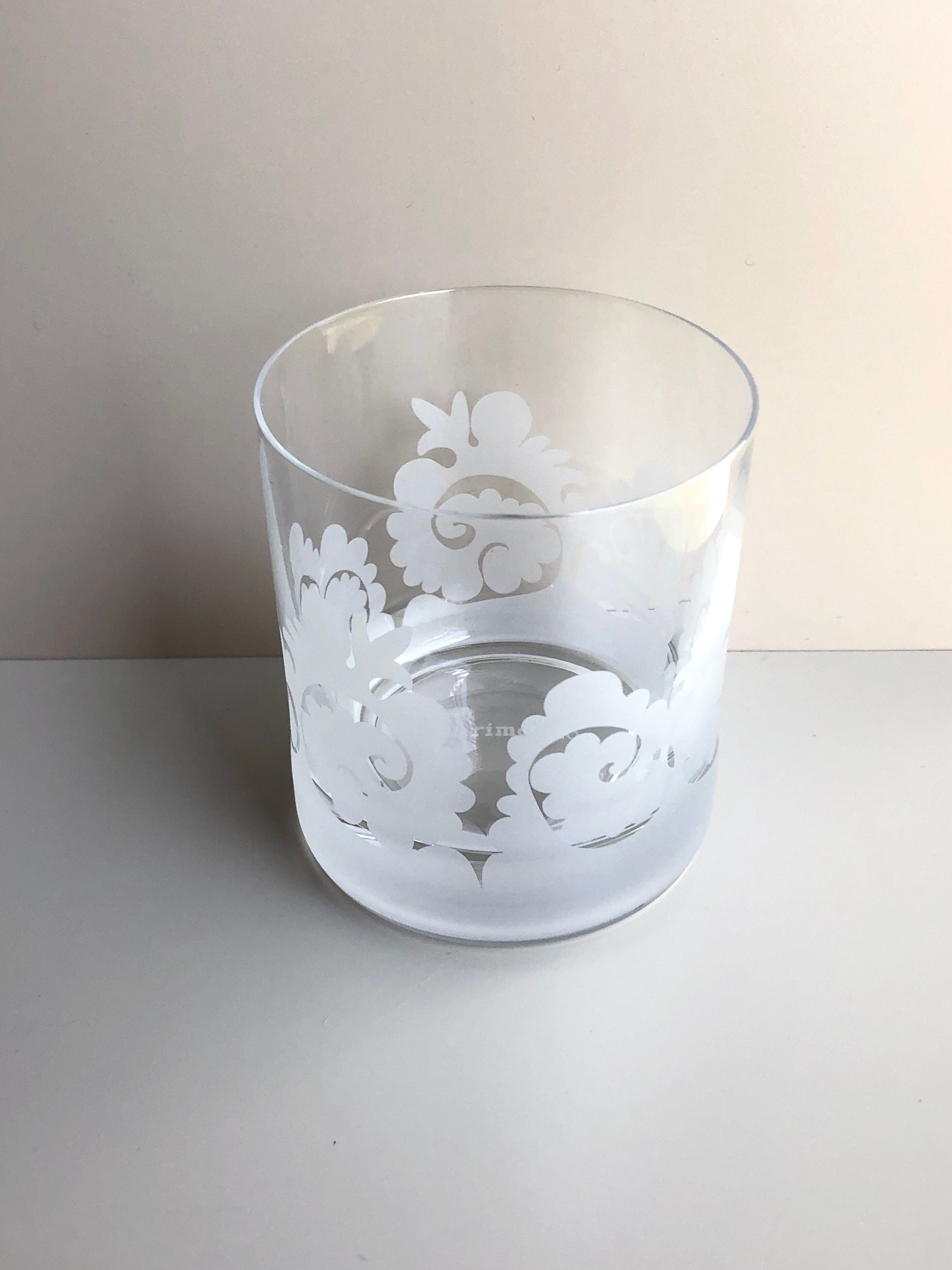 しっとりと手になじむような重さのある、ロックグラスタイプのグラスに、サモワールのパターンをフロストで表した高級感のあるグラスです。
