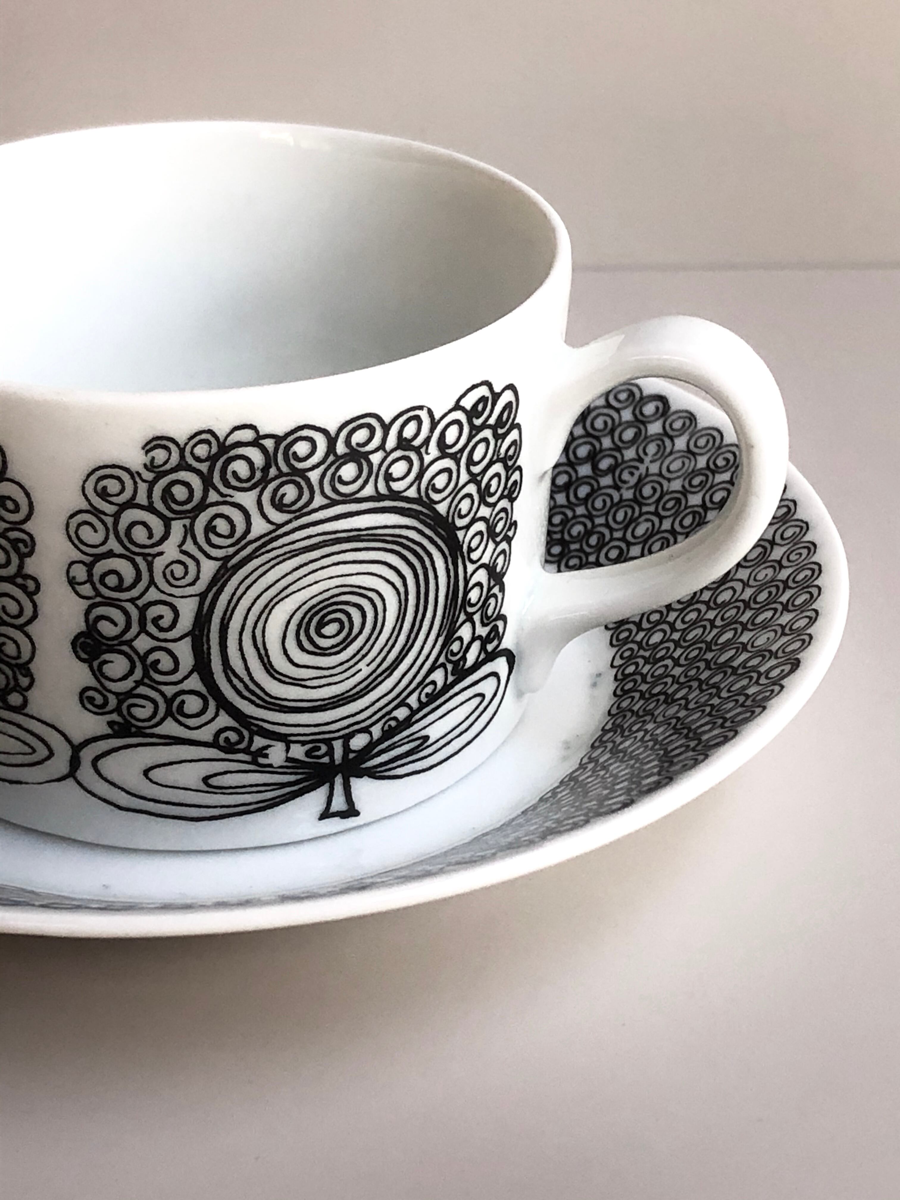ARABIAを代表するデザイナー、Esteri Tomula(エステリ・トムラ)がデコレーションデザインを手がけた、Calypso (カリプソ)のカップアンドソーサーです。