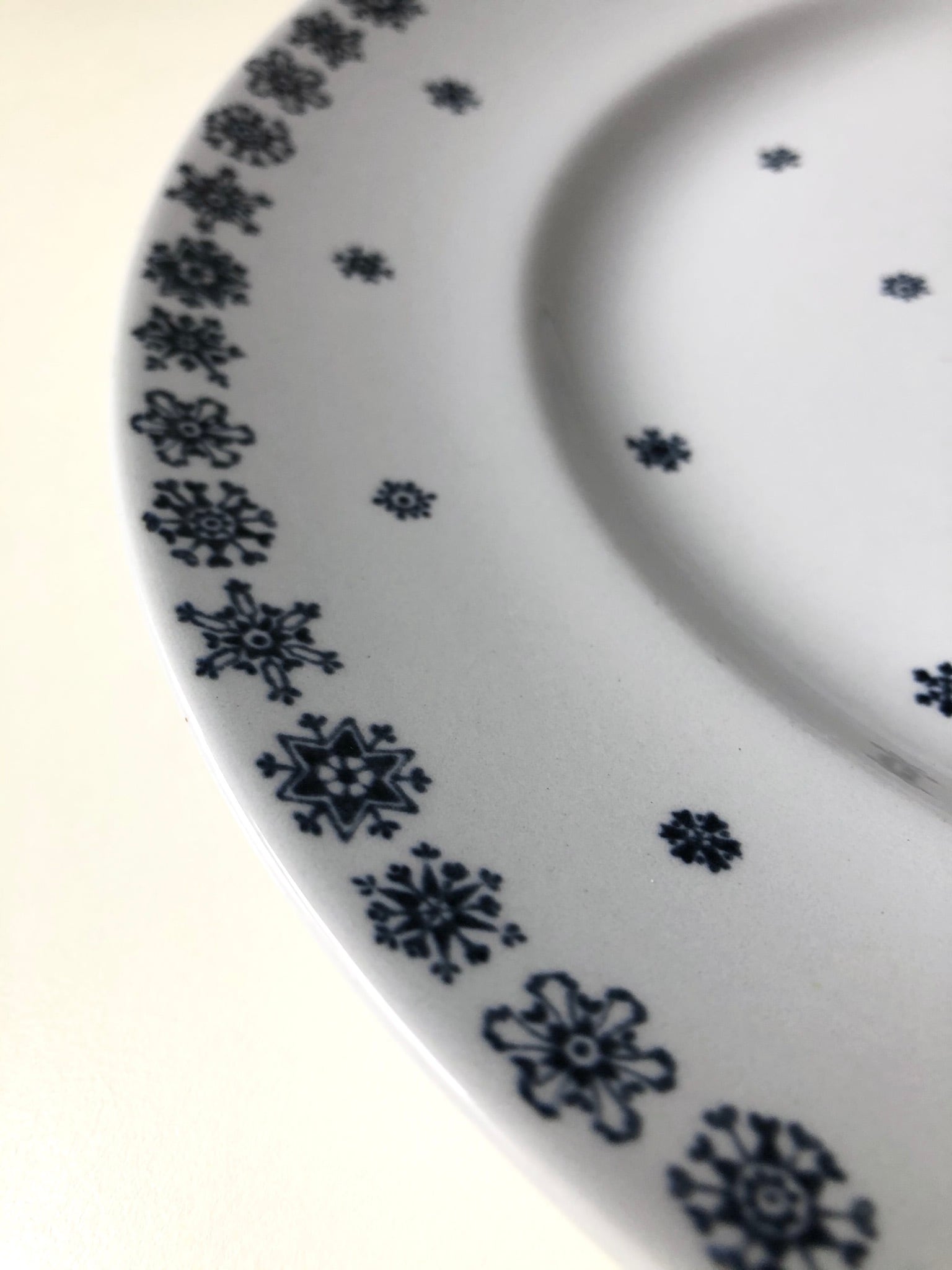 フィンランドの陶磁器ブランドARABIAにて、1950年代から60年代にかけて製造された雪の結晶がモチーフのテーブルウェアシリーズ、スノーフレークのディナープレートです。