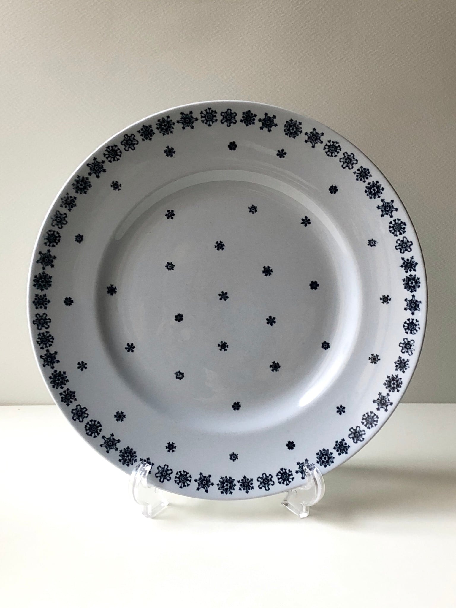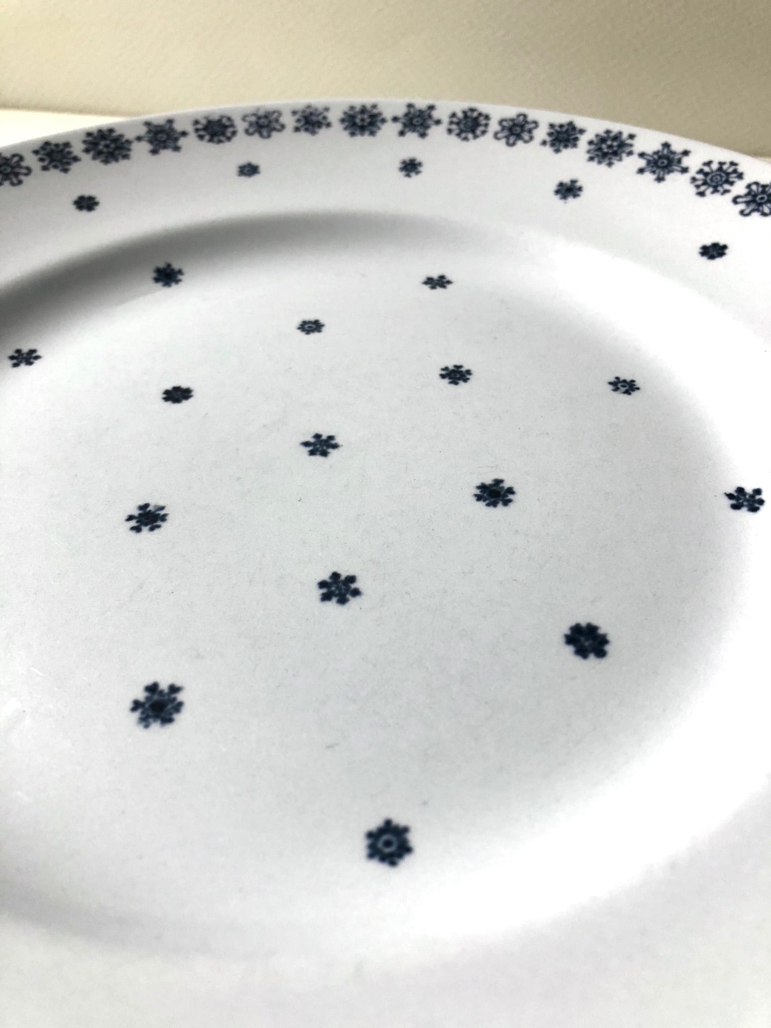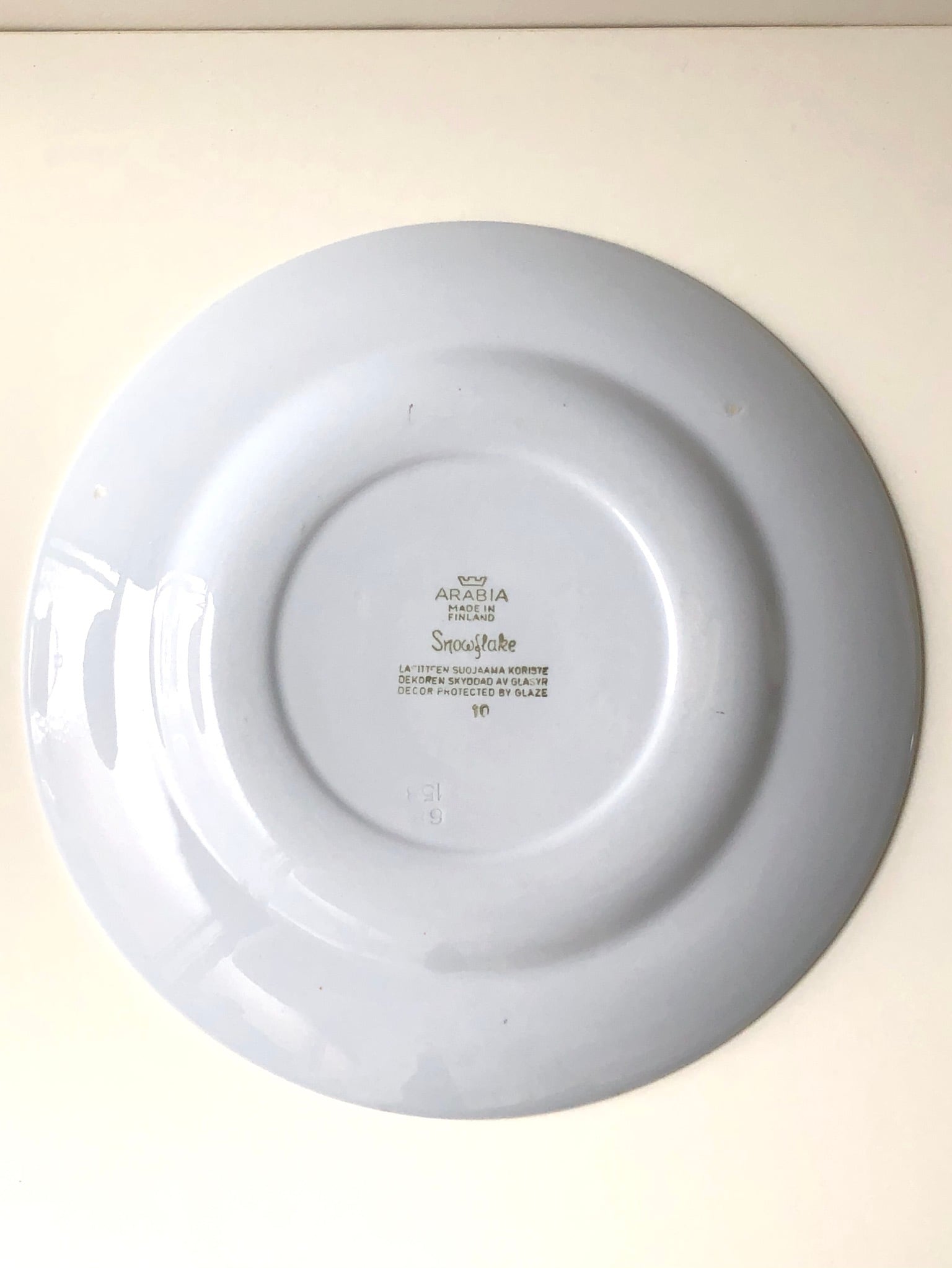 フィンランドの陶磁器ブランドARABIAにて、1950年代から60年代にかけて製造された雪の結晶がモチーフのテーブルウェアシリーズ、スノーフレークのディナープレートです。