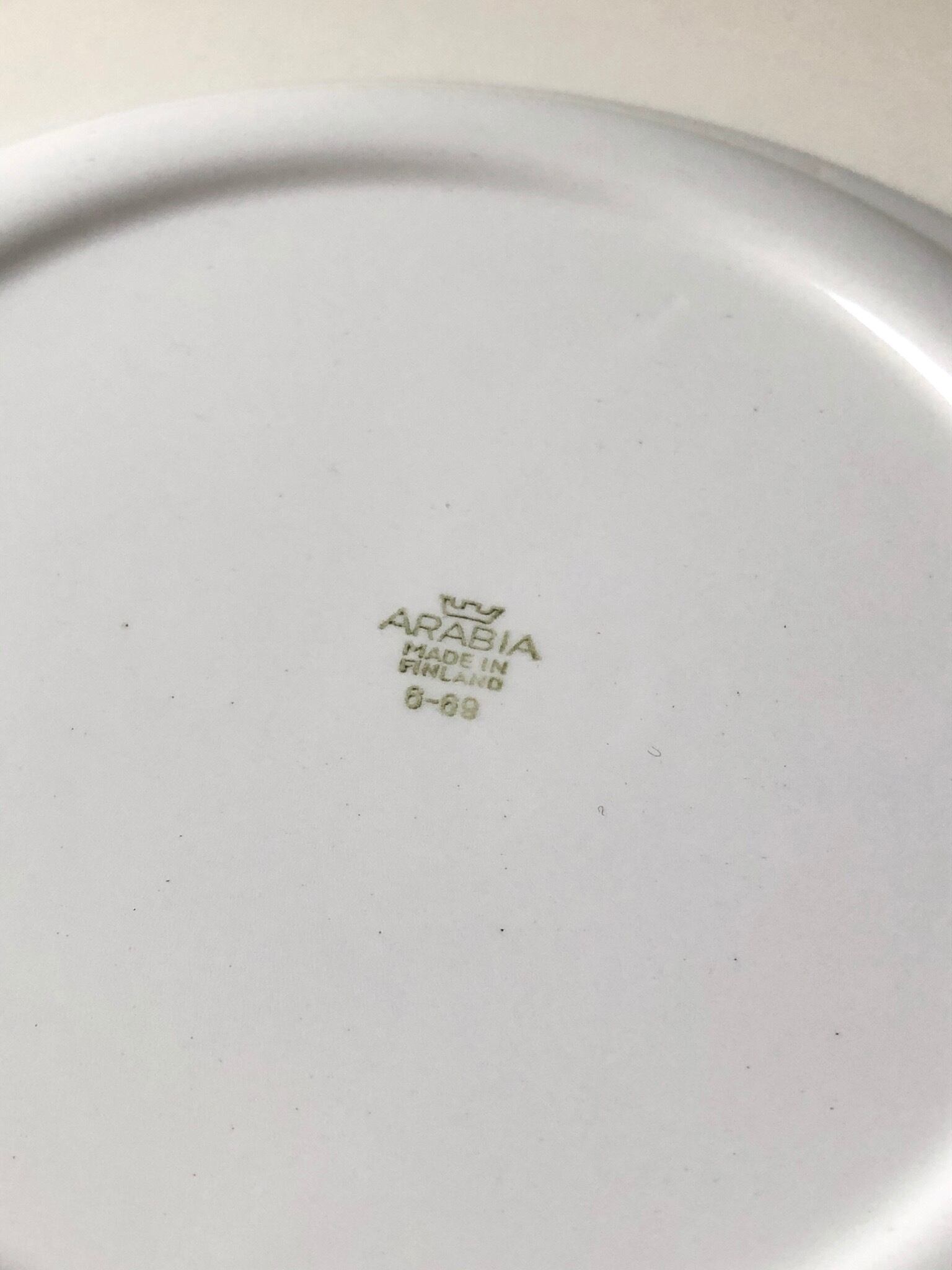 図案の雰囲気は、同じく輸出向けに作られていたFinnishFlintフィニッシュ・フリントシリーズのELINA(エリーナ)や、Tuula(ツーラ)に似ていますが、デコレーションデザイナーや製造年代など、詳しいことは分かっていません。