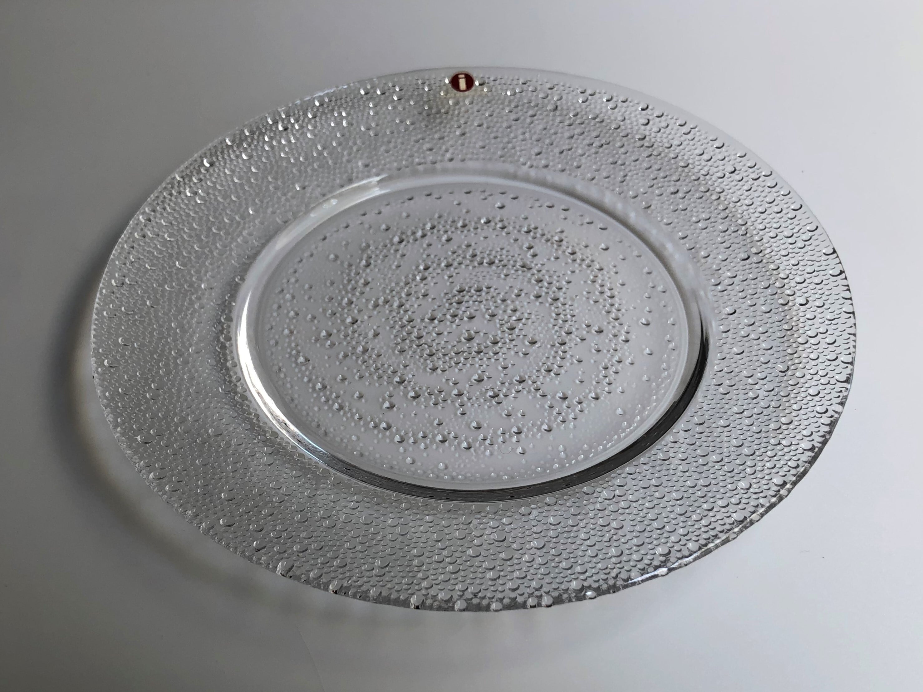 ウルティマツーレの作者としても有名なタピオ・ウィルカラによるデザインで、おそらく1970年代に頃に製造されていた、Auraシリーズのガラスケーキプレート17cmです。