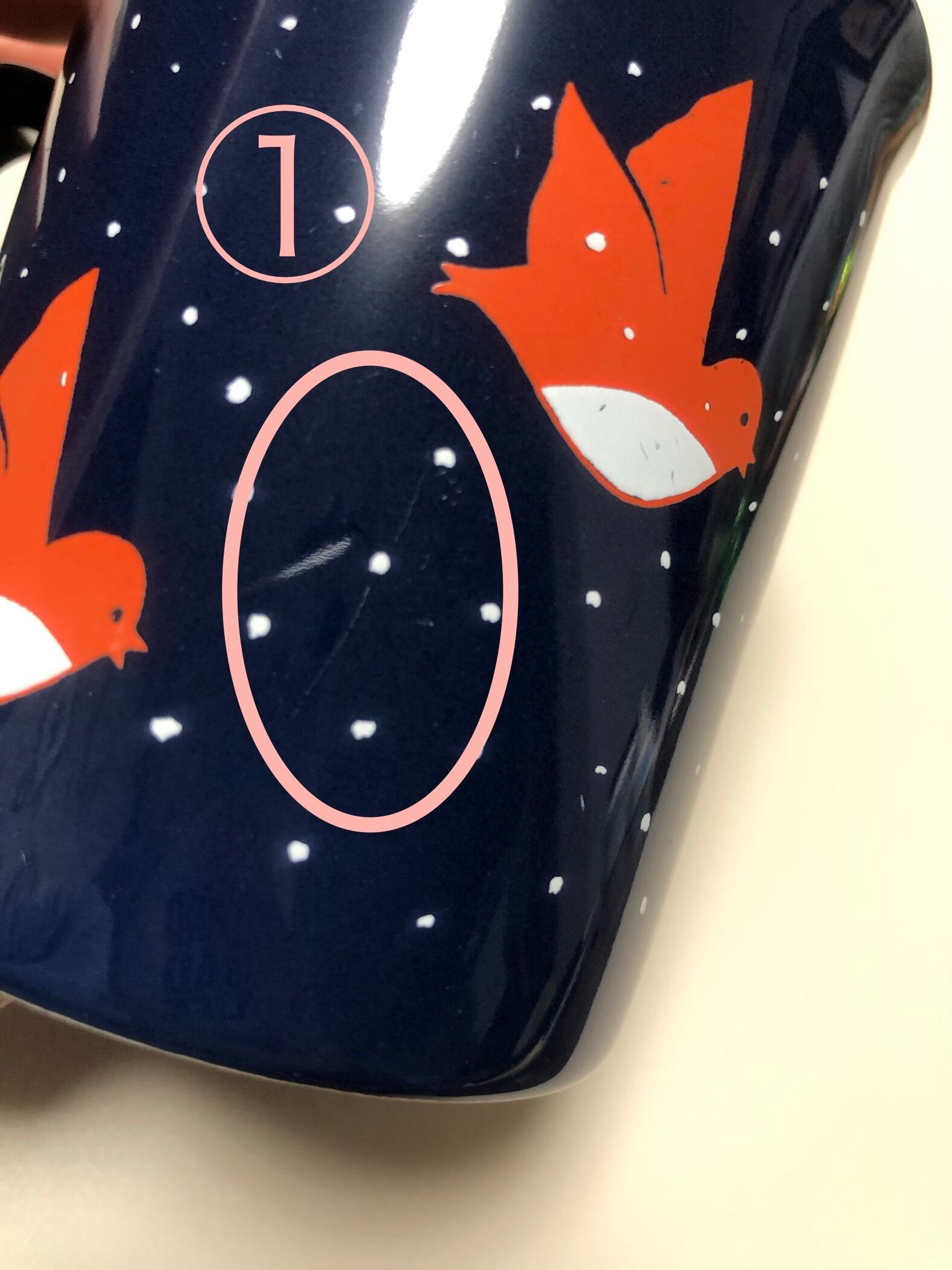 裏側の鳥に擦れによる軽めのペイントロスがあります。