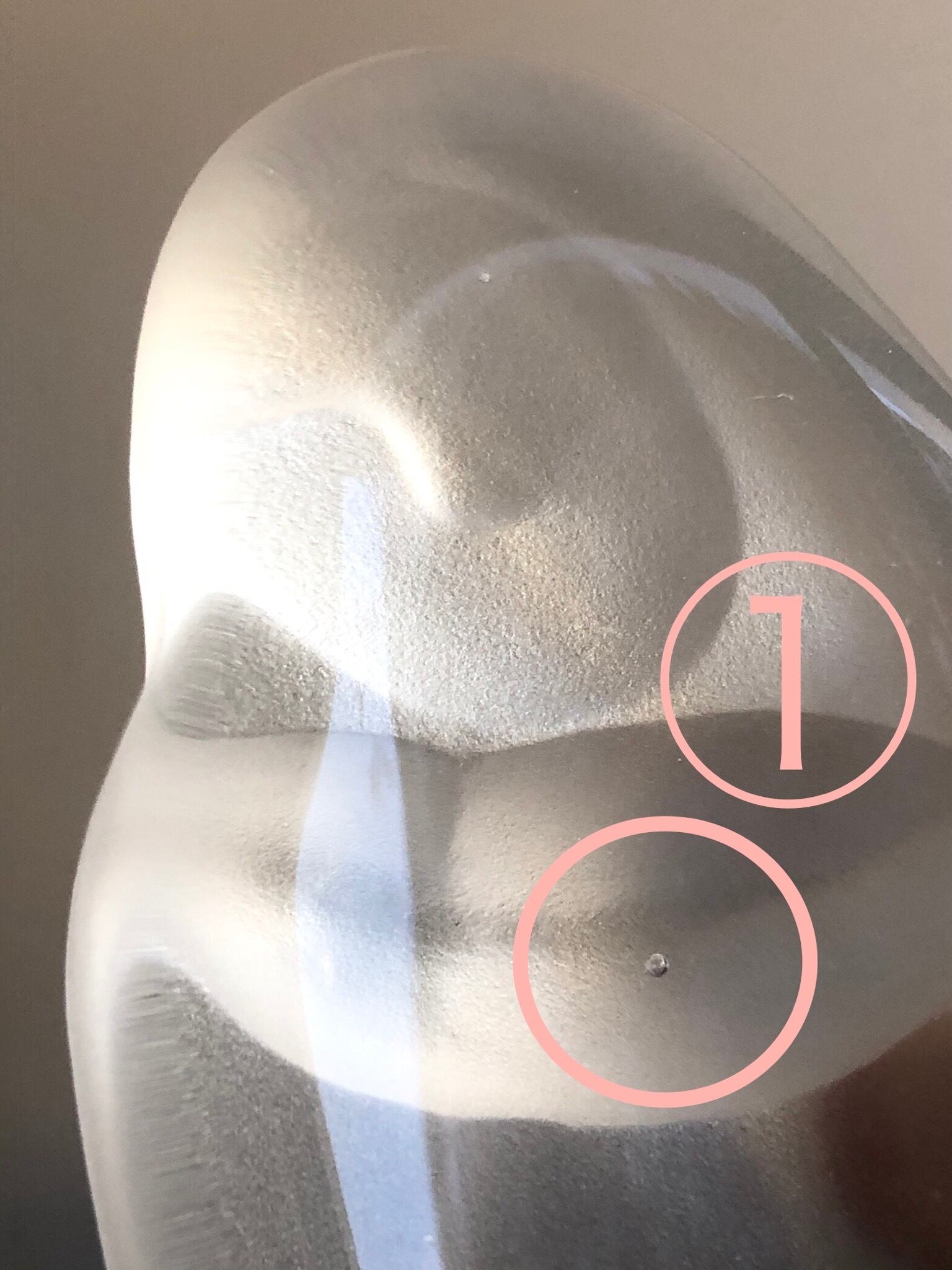 表面:フロスト加工のガラスです。お母さんのお顔に極微細な白い点傷がありますが製造段階の物のようです。
