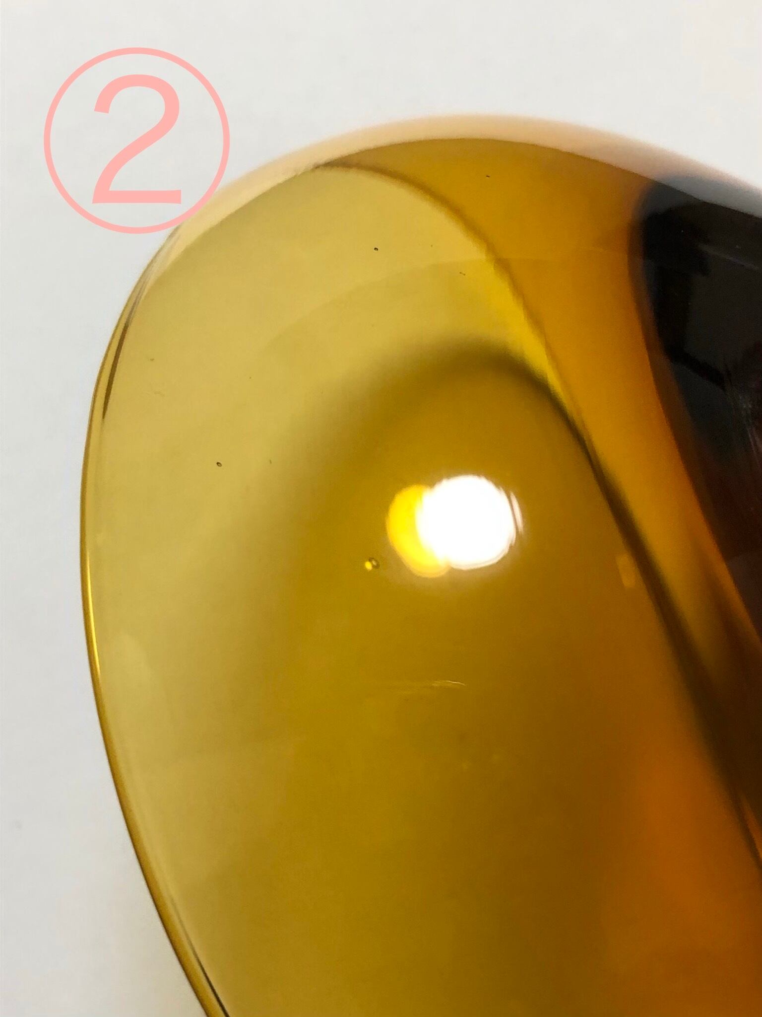 この状態はイッタラやヌータヤルヴィの古いガラスで特にプレーンなものに多く見られる状態です。製造段階で出来てしまうもので、光に透かさなければ分からない程度であり美観を損ねるようなものではありません。