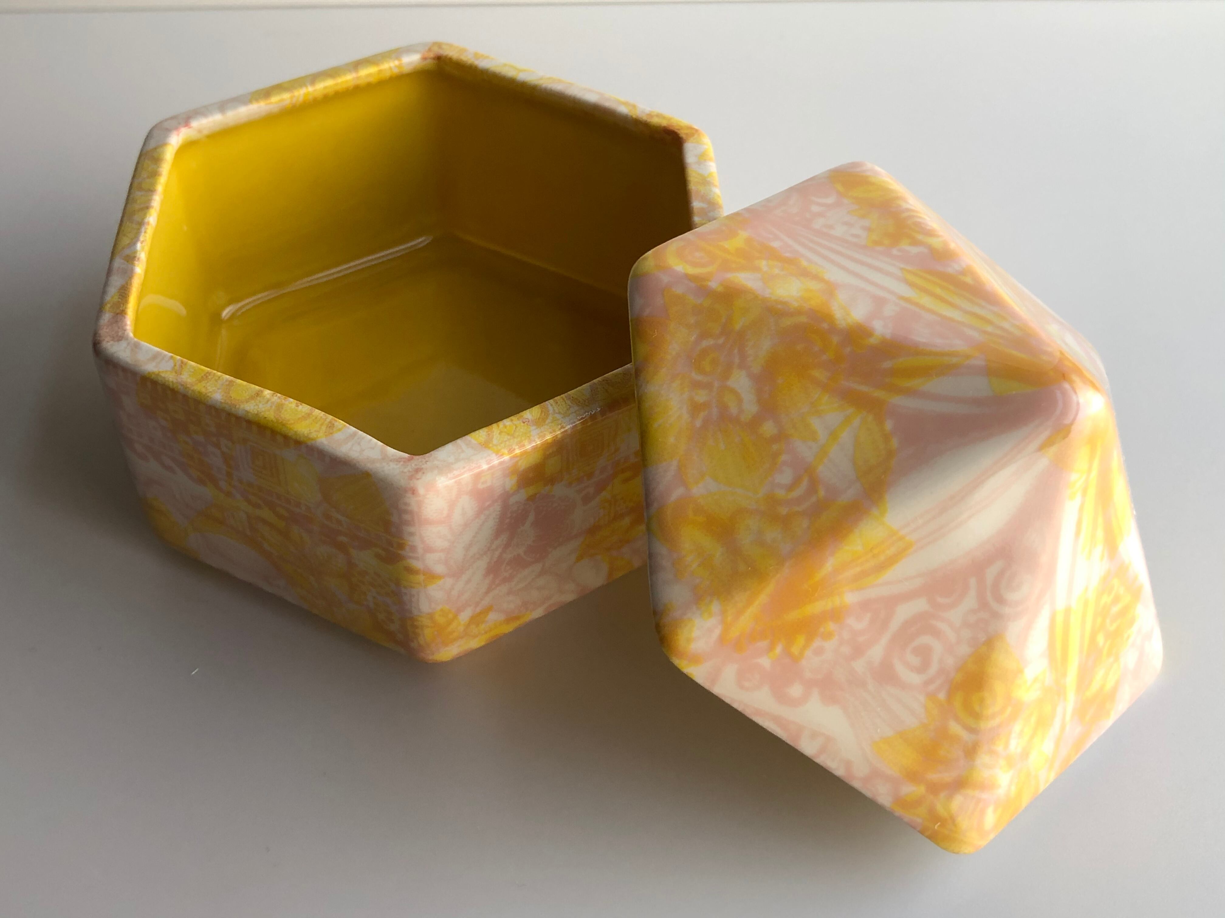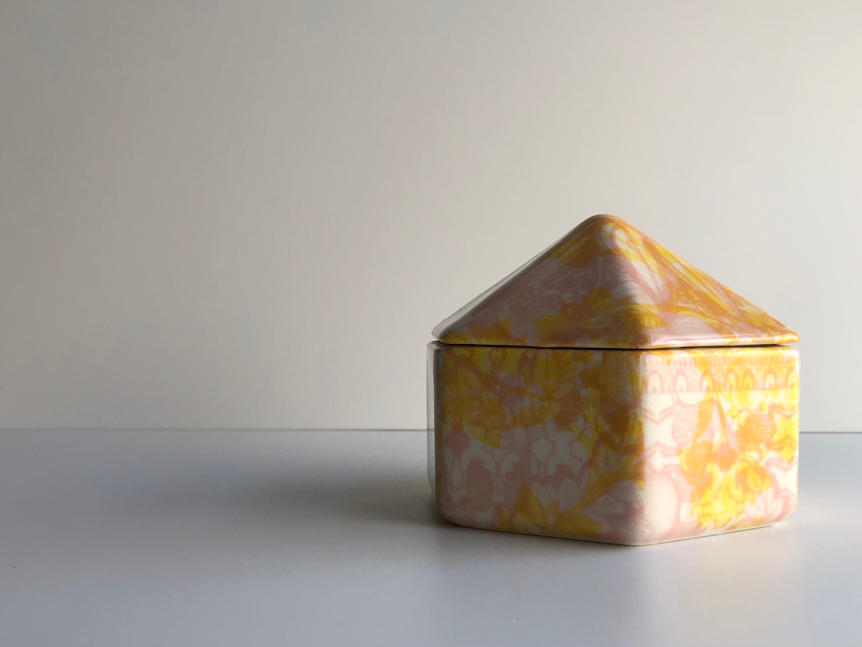 【Heini Riitahuhta】ヘイニ・リータフフタ Hexagon jar/ヘキサゴン ジャー(蓋物) ピンク/イエロー・アラビア Arabia Art Department