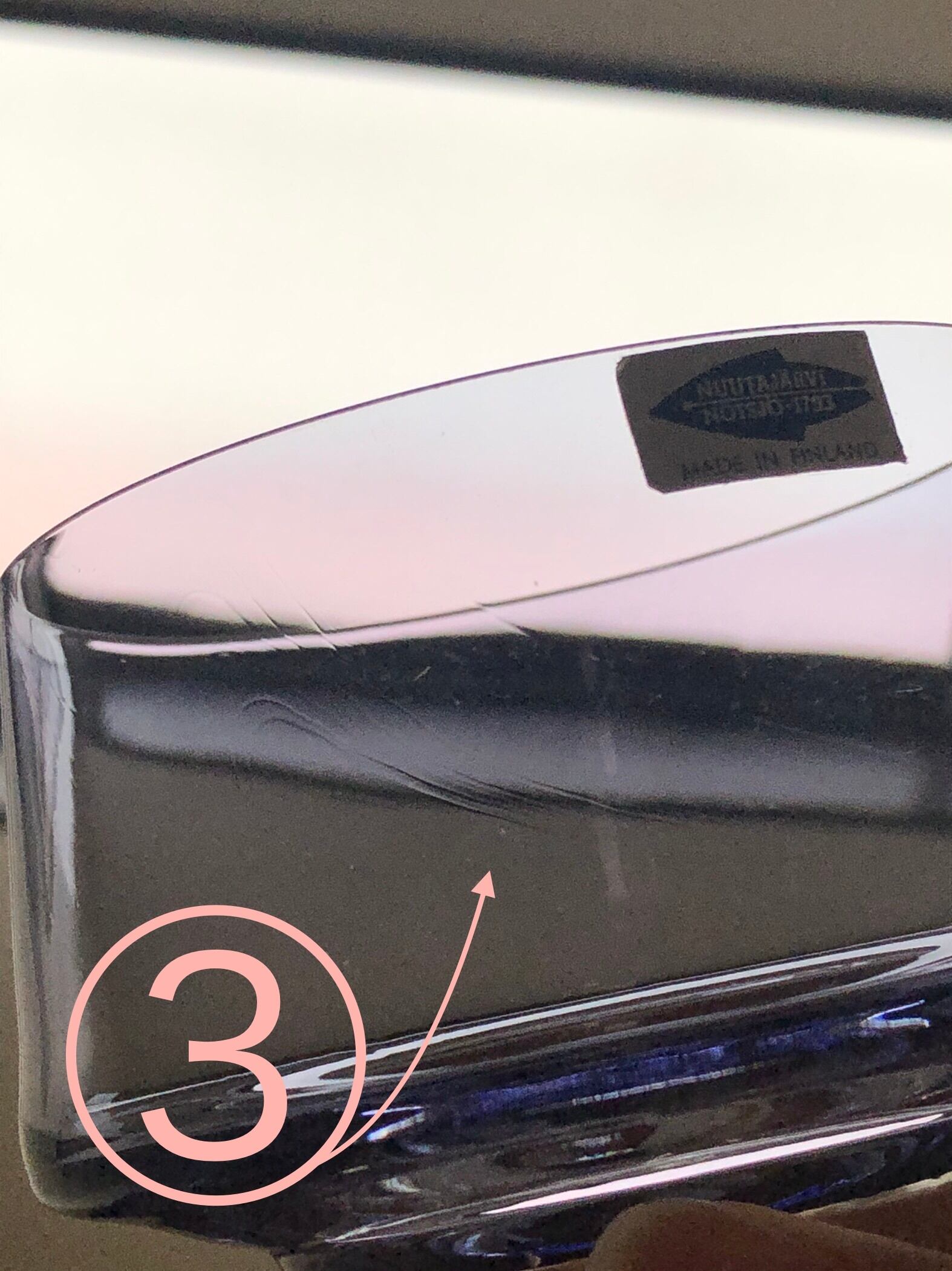 このネオジウムガラスとは、青紫の美しい色合いで、太陽光の下で見た場合は赤味を帯び、蛍光灯の下で見た場合は青みを帯びて見えるという面白い特徴を持っており、フィンランドのガラスデザインに多く用いられてきました。