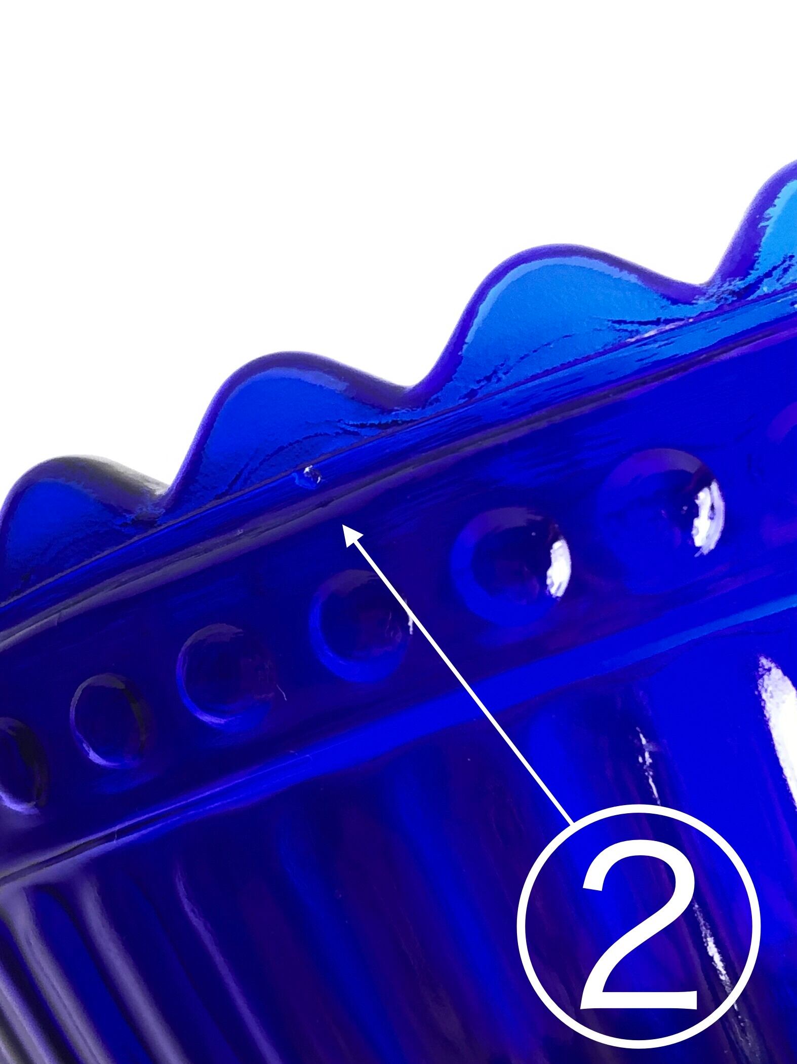 製造段階の物として、型にはめて際に出るガラスの小さな突起が見られます。