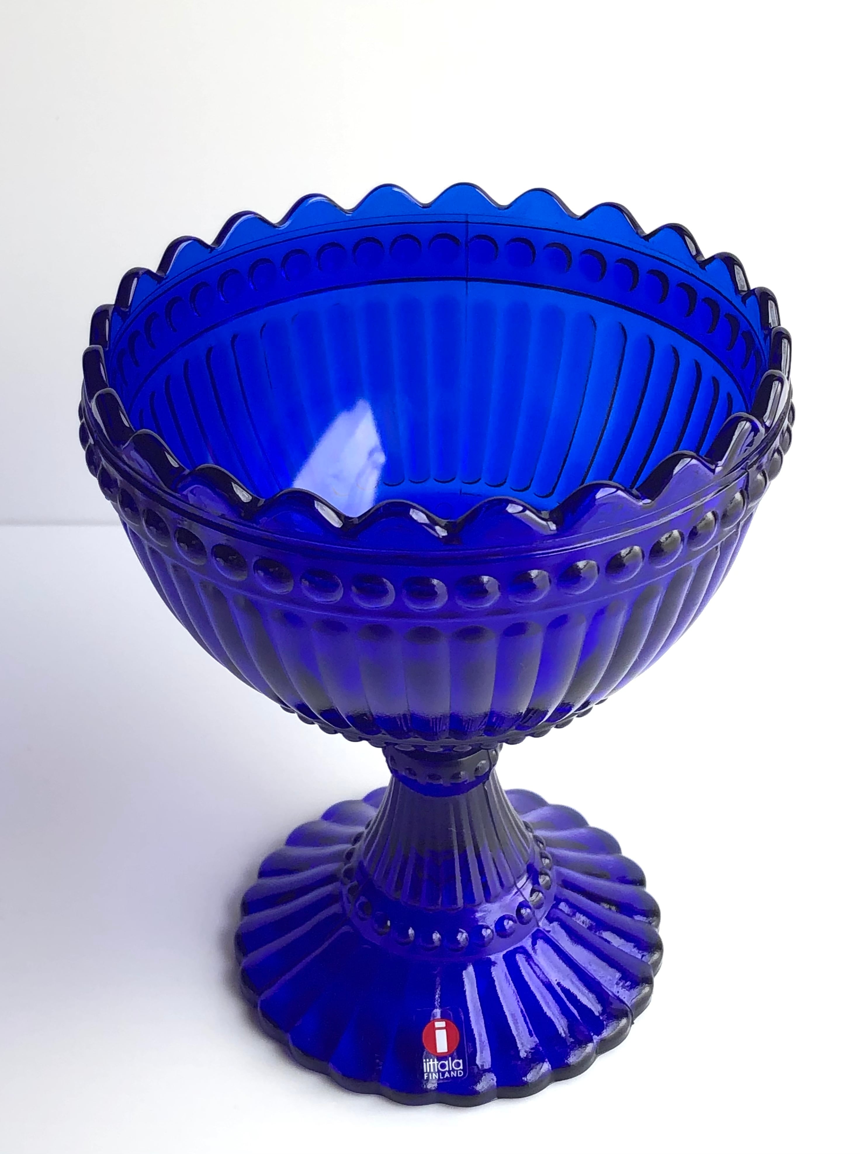こちらのお品はイッタラのステッカーから2001年頃までに作られた、二代目のコバルトブルーであることがわかります。(初代の生産は1960年代に1年だけ製造されたそうです。)