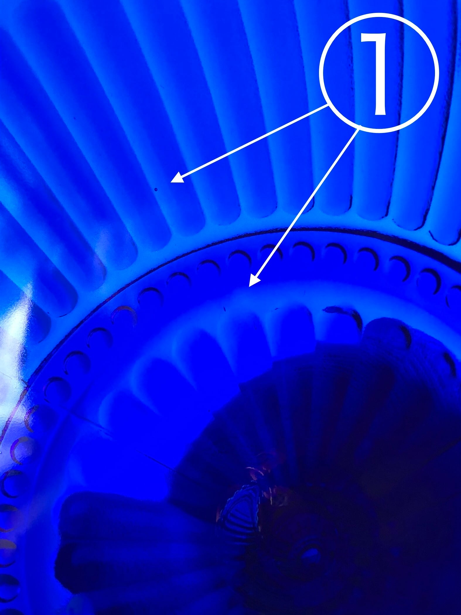 製造段階の物として、光にすかして見ると小さな気泡又は色の塊りが見えます。