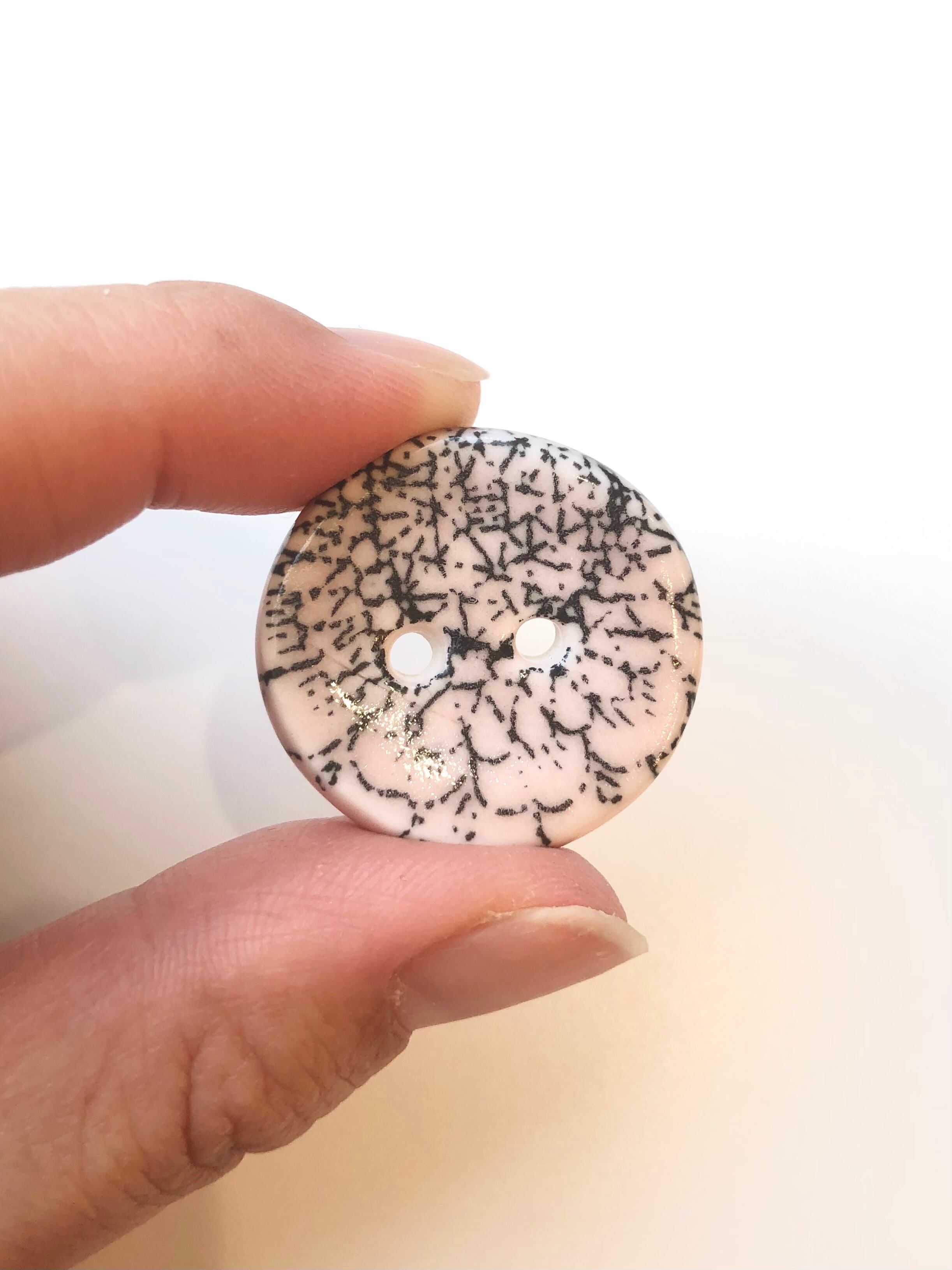 アラビアの人気デザイン、RunoやHuvilaのデザイナー、Heini Riitahuhta / ヘイニ・リータフフタ によるハンドメイド、一点物のアート作品 『Koru Nappi / ジュエリーボタン』、こちらは一番小さなサイズです。