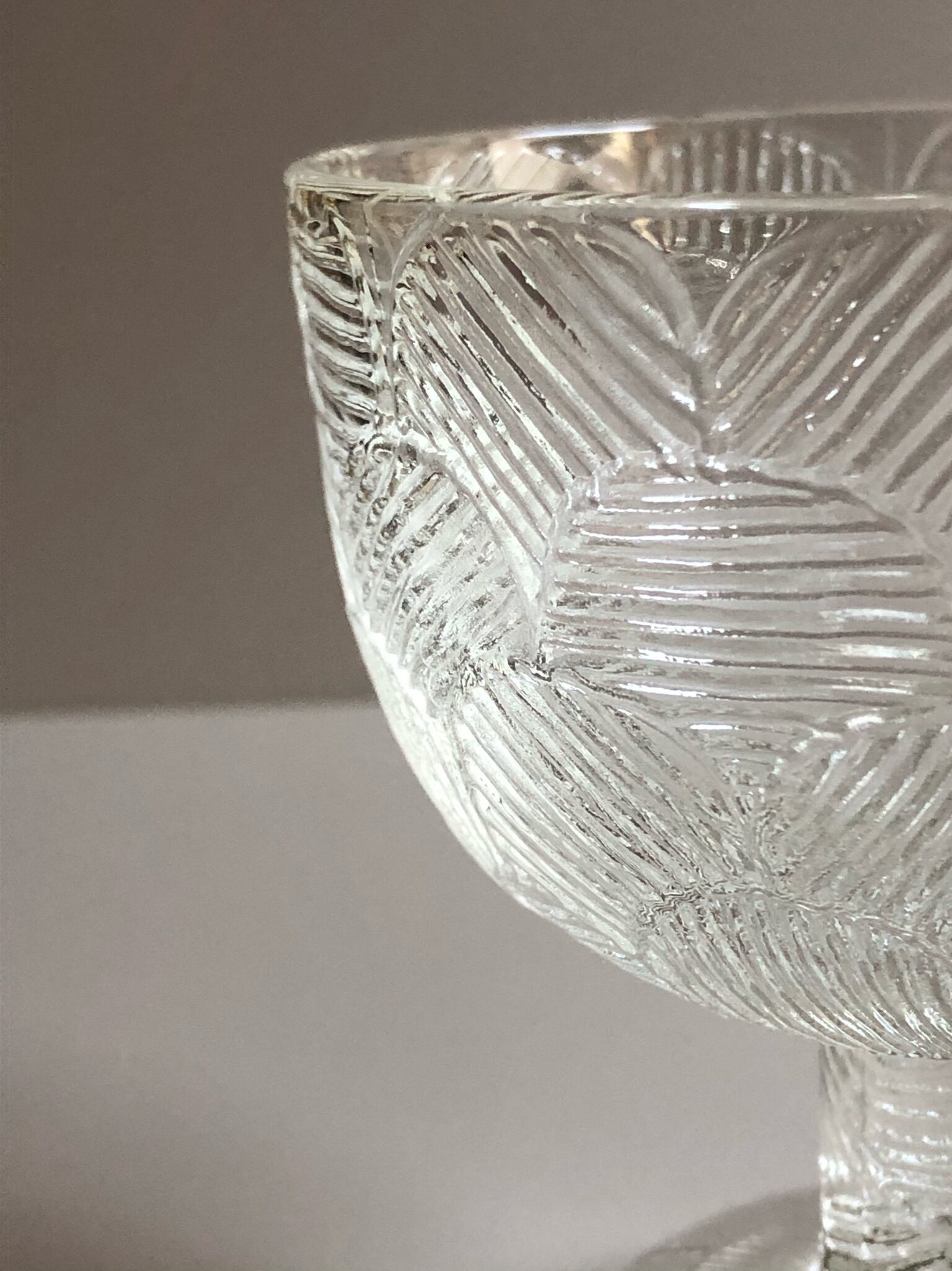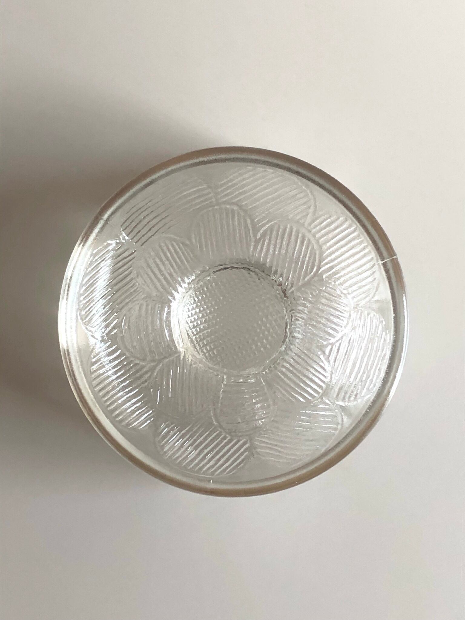 特に気になる傷や汚れは無く、とてもきれいな状態ですが、製造時から50~60年程もの時を経ていますので、極微細な擦れがみられることがございます。また製造時に出来るガラスのむらや、ガラスの中に閉じ込められた気泡、微細な混入物がみられることもございます。