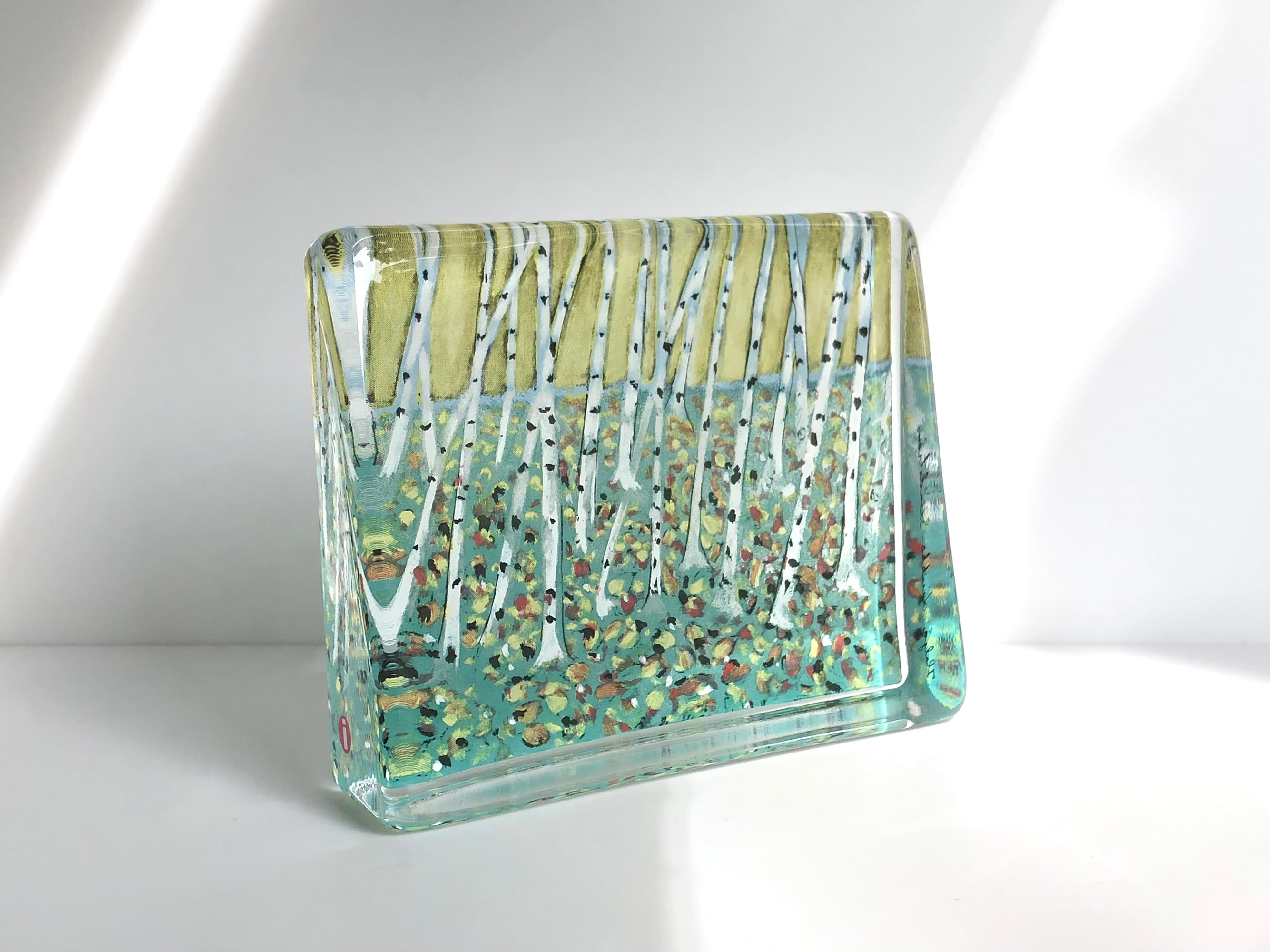 このガラスカードには、フィンランドの森を思わせる白樺の木がガラスいっぱいに描かれています。