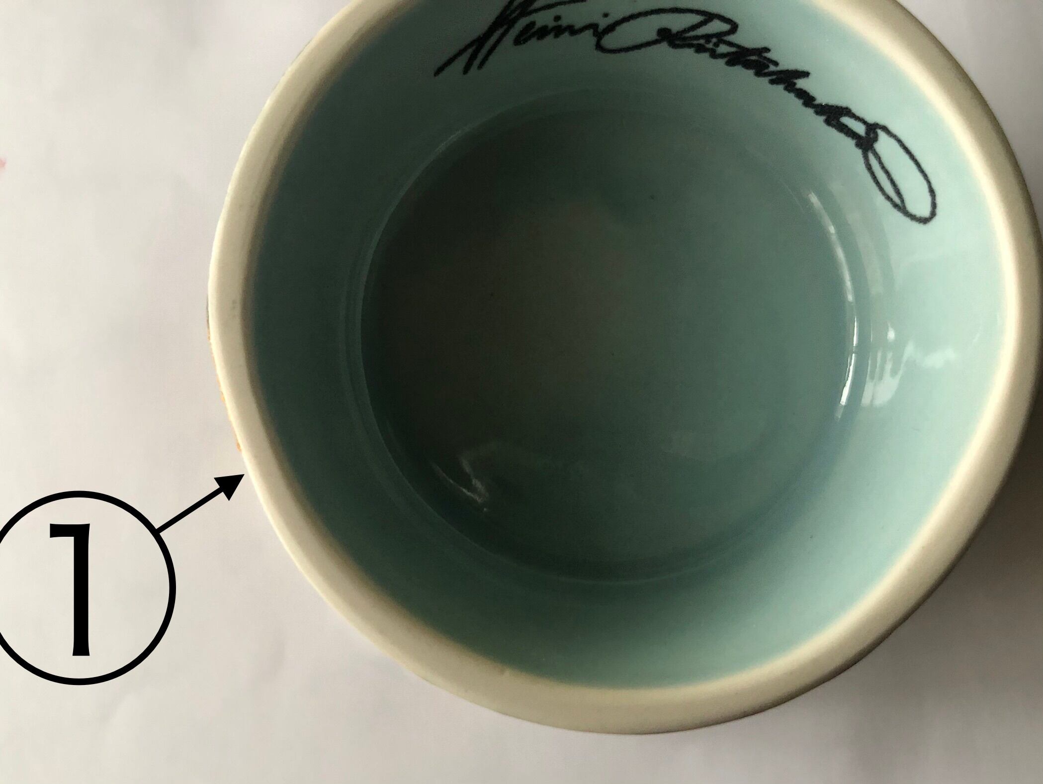 特筆していない物でも製造段階から生じる、わずかな歪み、絵付けや釉薬の色ムラや色飛び、スポット、はじけ小さな突起等が生じることがございます。