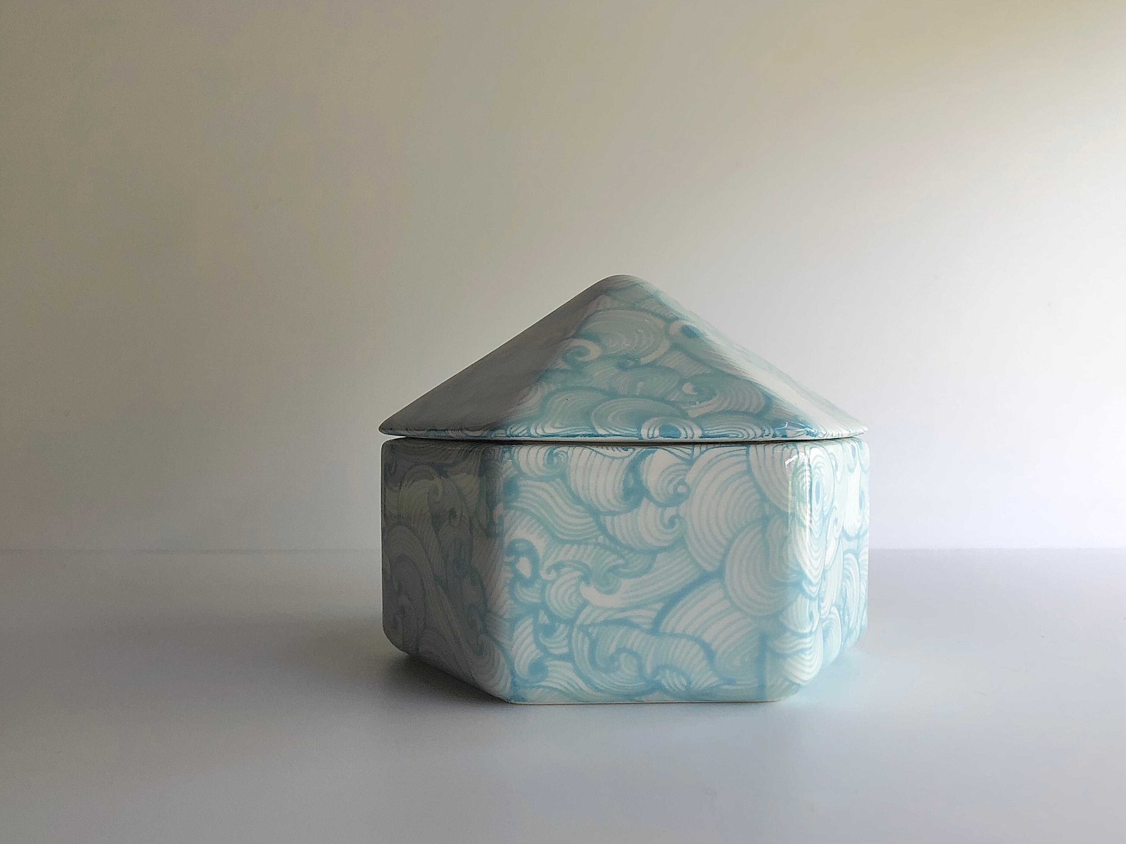 【Heini Riitahuhta】ヘイニ・リータフフタ Hexagon jar/ヘキサゴン ジャー(蓋物)ターコイズブルー 波 ・アラビア Arabia Art Department