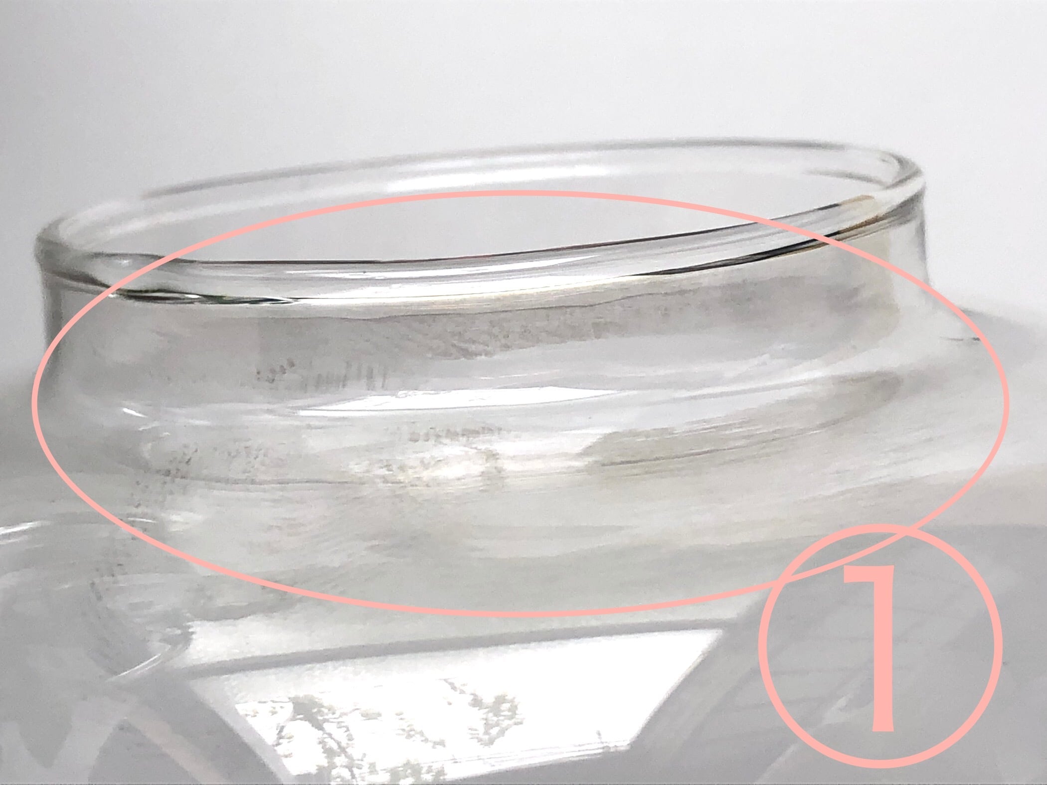 使用回数はかなり少なそうですが、キャンドルを灯した際についた煤なのか、それとも製造時の物なのかカバーを光に透かすとガラスに薄汚れのような部分があり、クリーニングをしましたが取れませんでした。