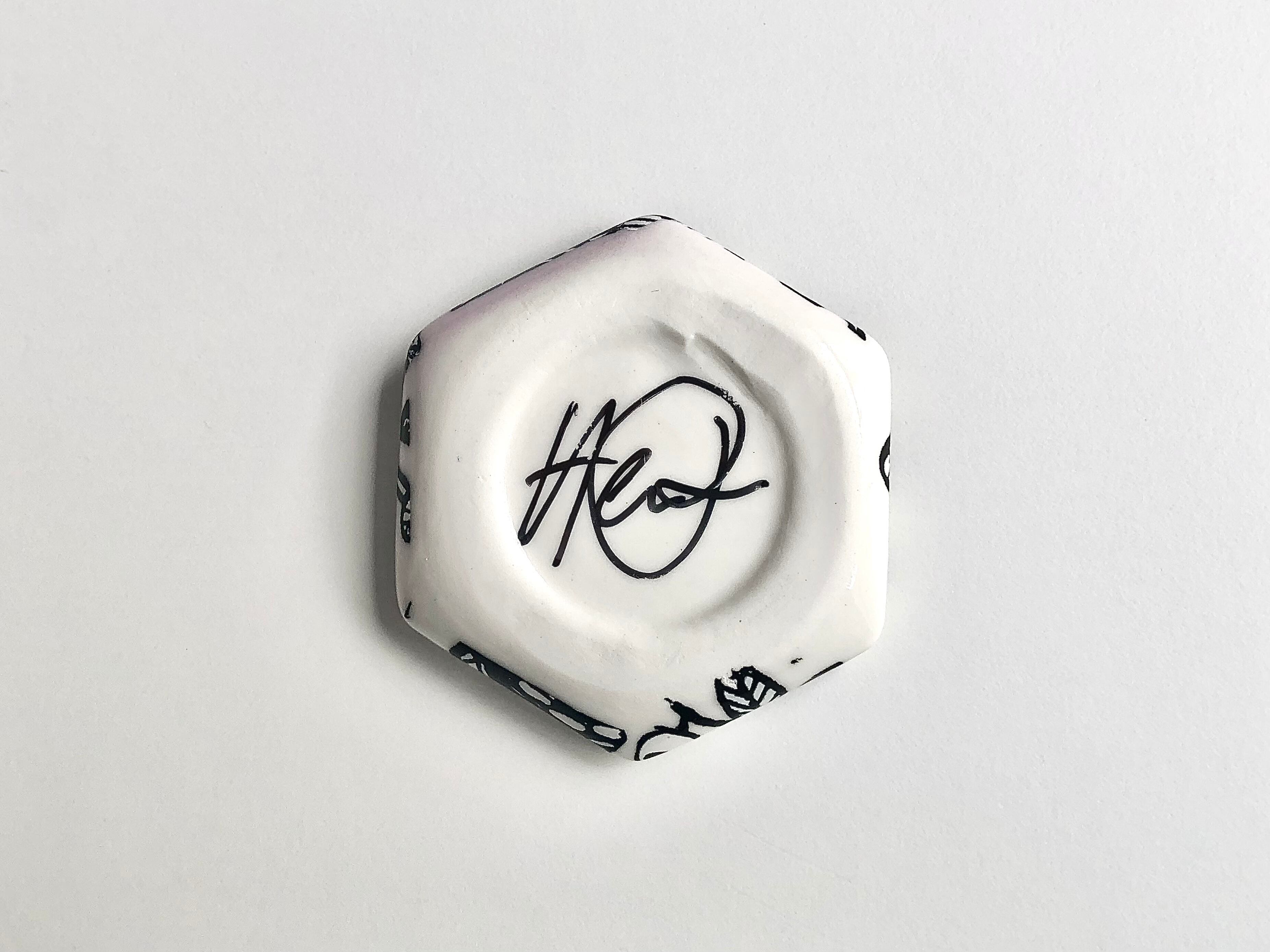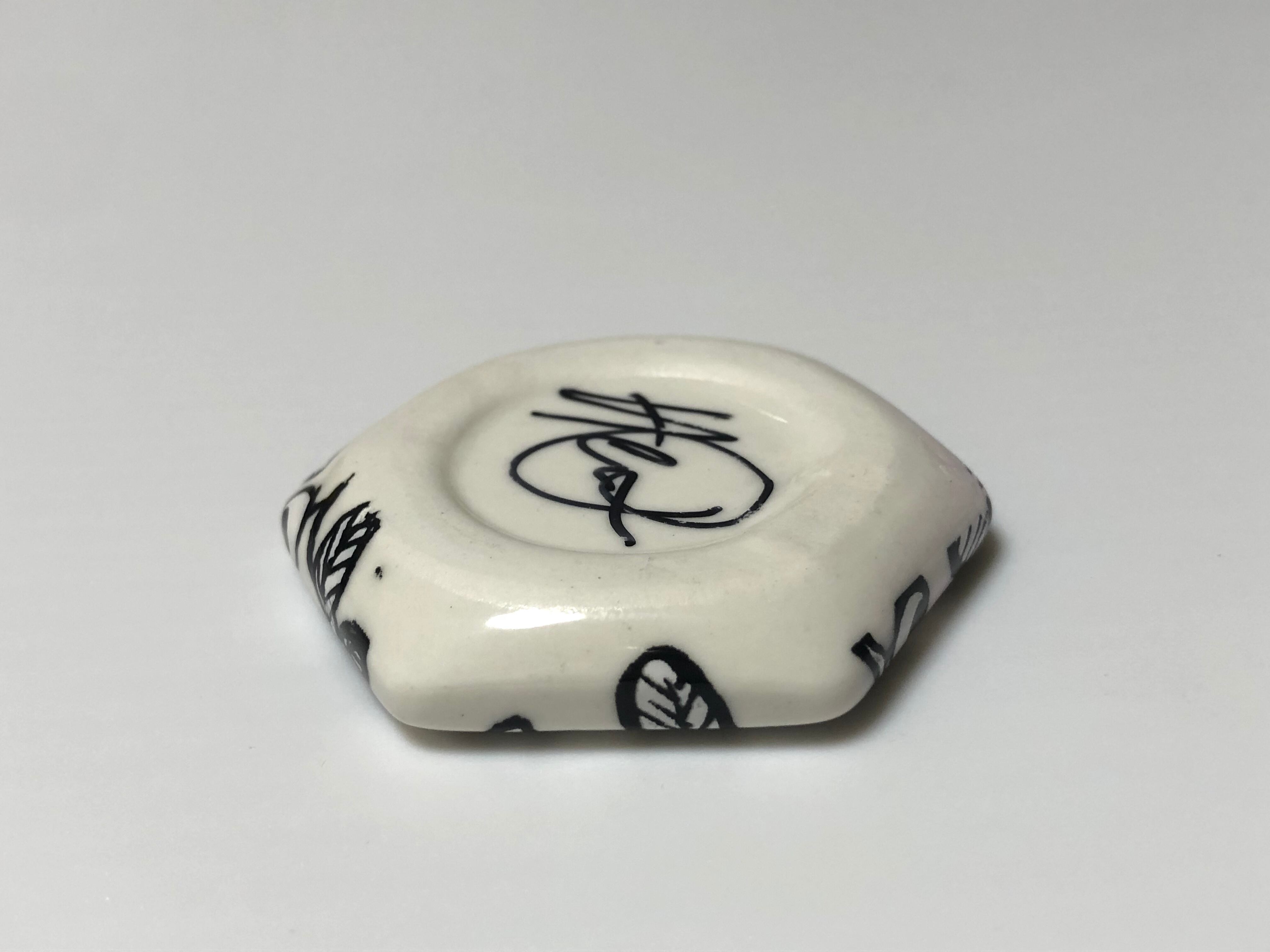 彼女の代表作であるヘキサゴンのミニサイズ版。六角形の陶器製タイルに、ヘイニさんがデザインした図柄が施されてた、オリジナリティにあふれたアイテムです。