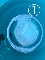 製造段階でガラスに含まれた気泡や小さな気泡の弾けがございます。口の付近にこの気泡の弾けがあるものは爪でなぞると僅かに引っかかりますが、チップではありません。
