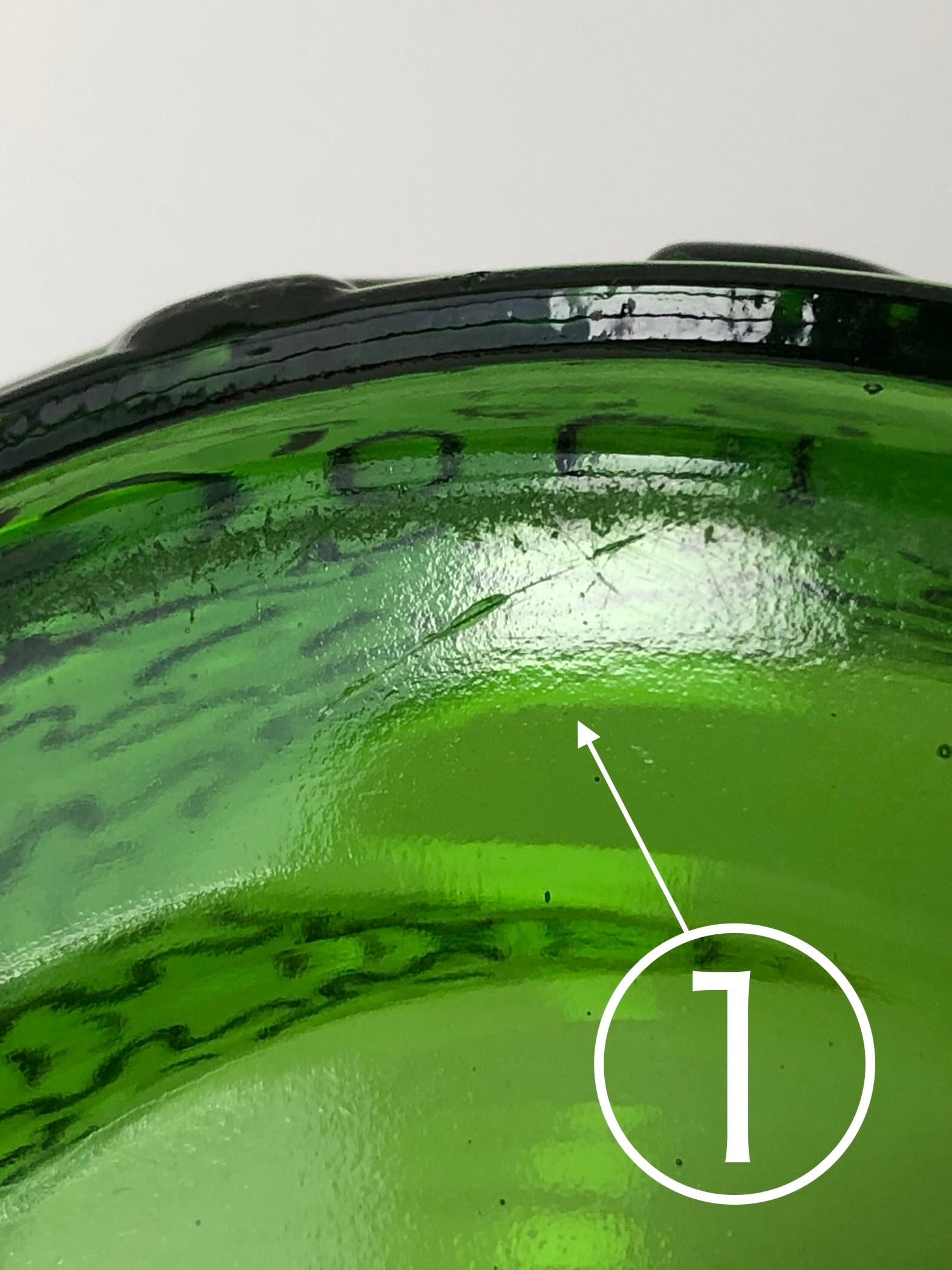 その他、古い時代のガラス特有の微細な気泡や、ガラスのシワがございますがその程度も軽微です。