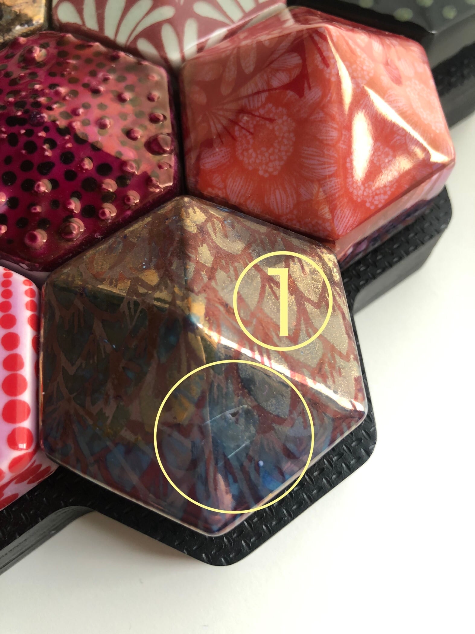 真ん中の一番上のヘキサゴン表面に製造時からの浅い擦れがございます。