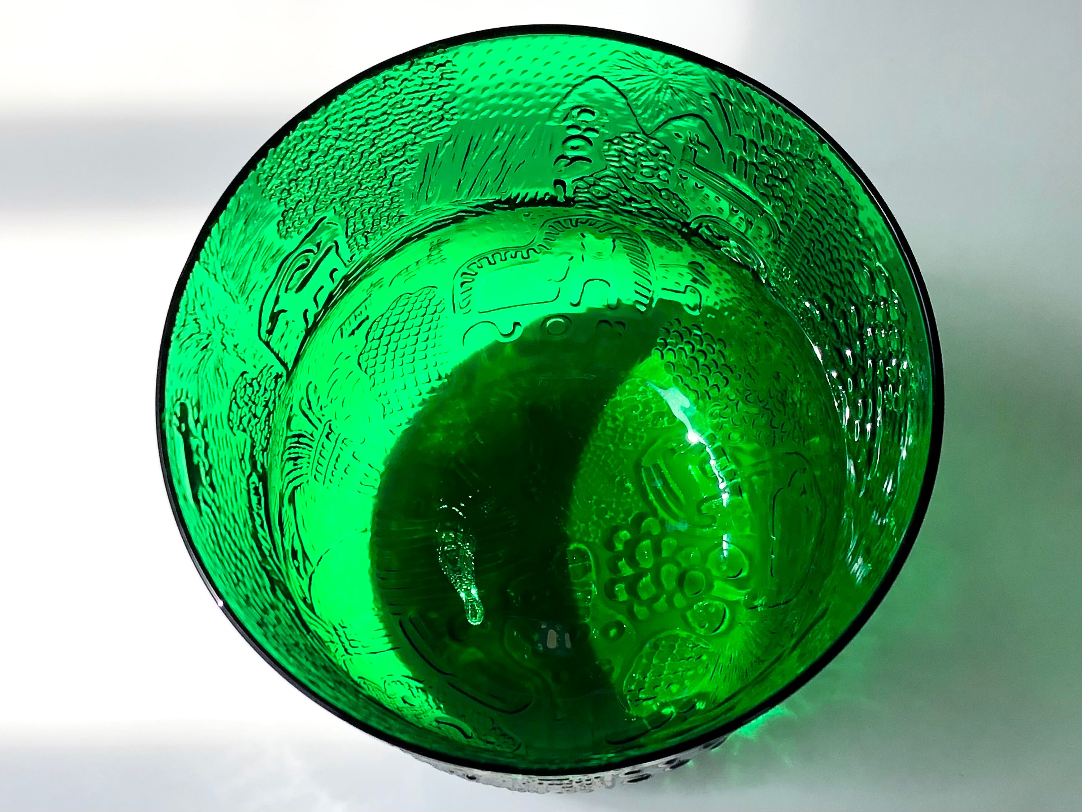 ボウルには側面と底面には様々な動物や風景がで表現されており、ぐるぐると回しながら何が隠れているかを探す楽しみがあります。マウスブロウによる薄造りな構造だからこそ、繊細に現れる美しい動物たちのエンボス柄が見どころです。