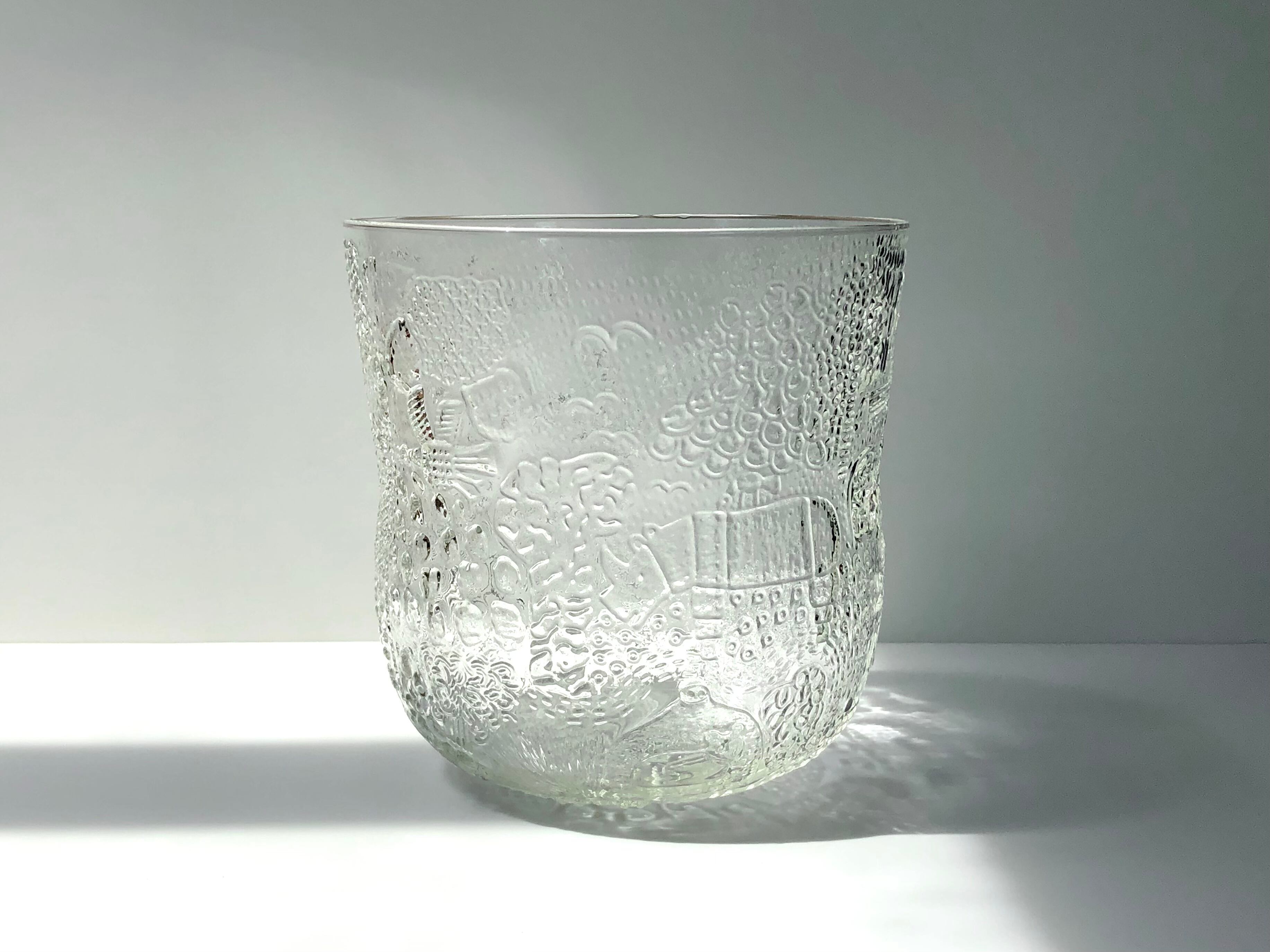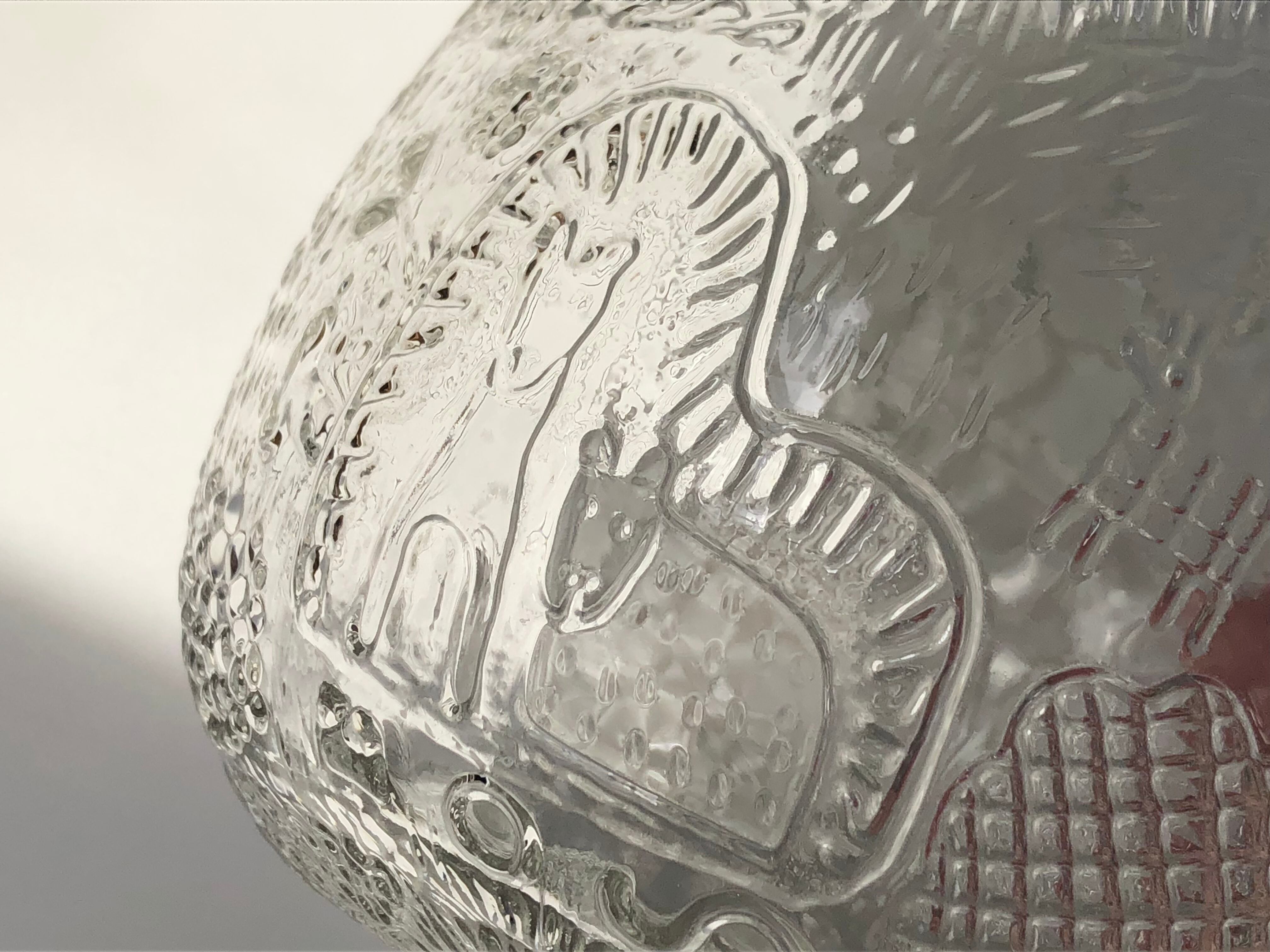 ボウルには側面と底面には様々な動物や風景がで表現されており、ぐるぐると回しながら何が隠れているかを探す楽しみがあります。マウスブロウによる薄造りな構造だからこそ、繊細に現れる美しい動物たちのエンボス柄が見どころです。