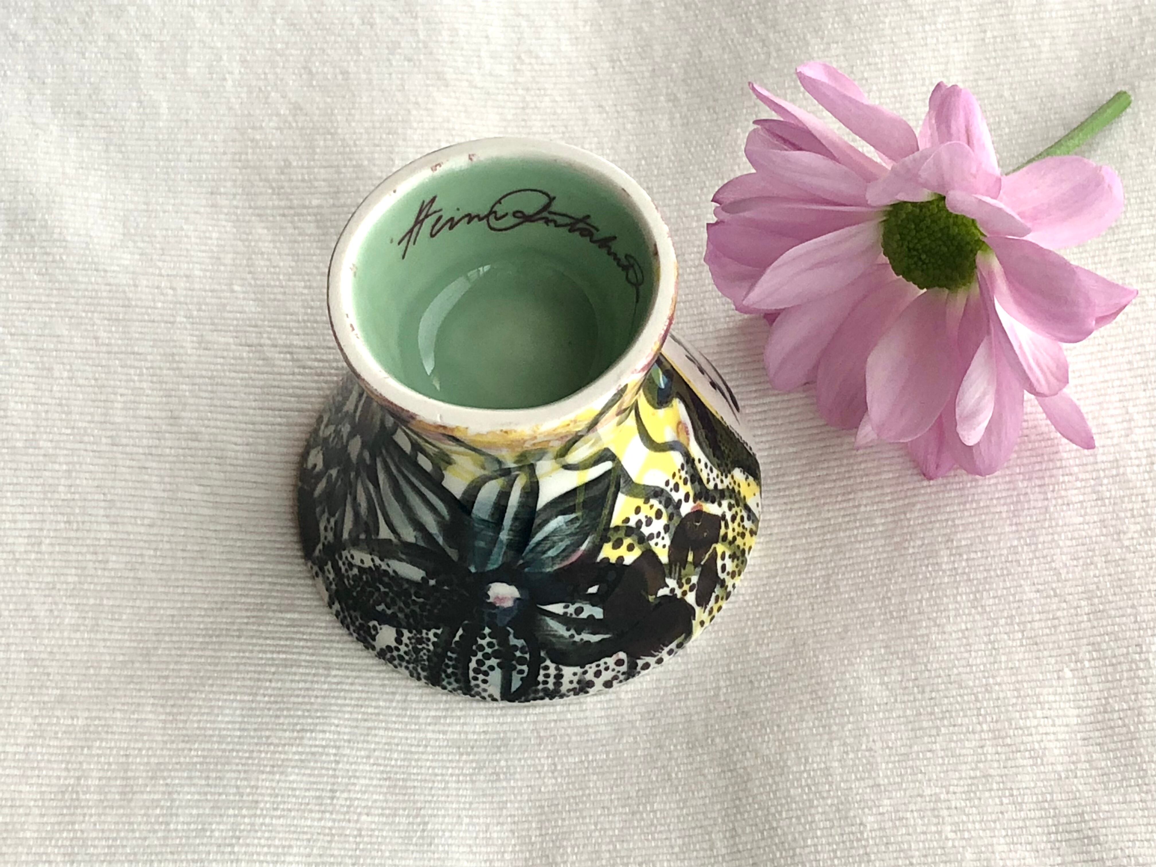 アラビアの人気デザイン、Runo”ルノ”やHuvila”フヴィラ”のデザイナー、Heini Riitahuhta / ヘイニ・リータフフタ によるハンドメイド、一点物のアート作品 『Mini Face cup』です。