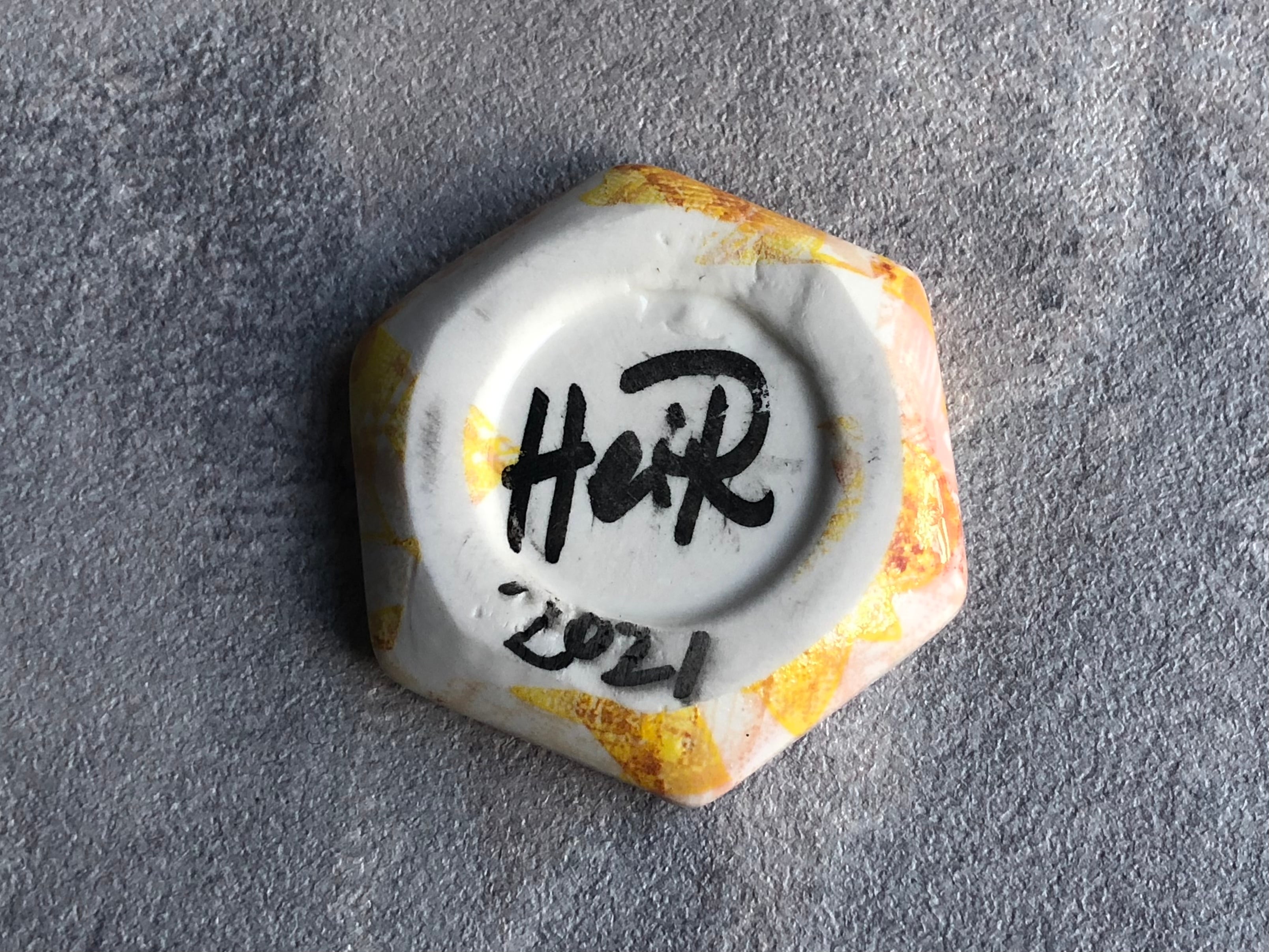 アラビアの人気デザイン、RunoやHuvilaをデザインした、Heini Riitahuhta / ヘイニ・リータフフタ によるハンドメイド、一点物のアート作品 『minihexagon/ミニヘキサゴン』2021年製の最新作です。