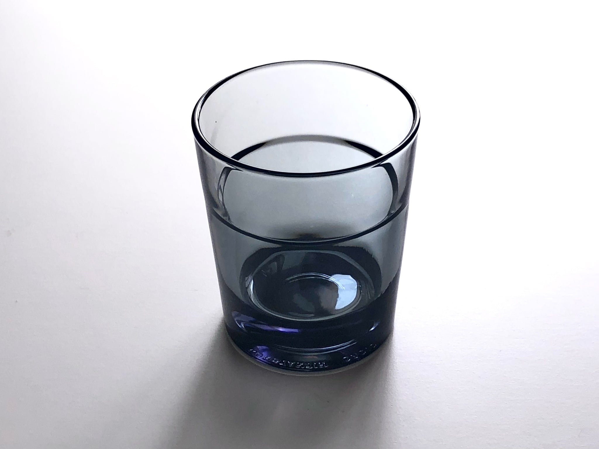 グラスにつけられたテーパーの角度も美しく、底に分厚いガラスの層が設けられたことで色ガラスのグラデーションを楽しむことができます。(このグレーは太陽光に当たると分厚いガラスの部分にややパープル味を感じることができるのも見どころです。)