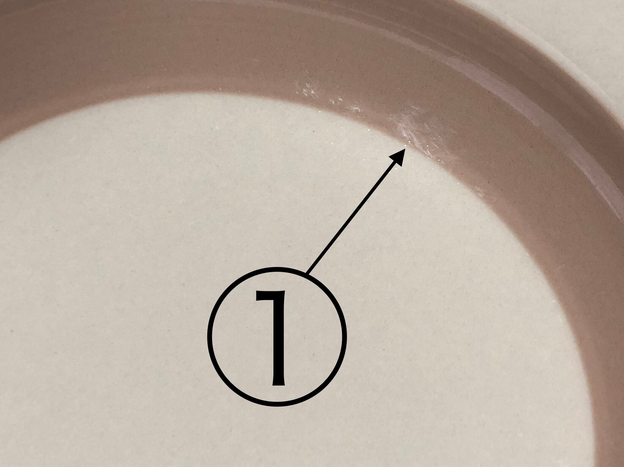 微細な擦れや軽微なスクラッチが僅かにみられる程度で、艶もしっかりとあり使用感の少ない大変きれいな状態です。その他製造時に生じる灰飛びのような小さな黒点やスポットが見られます。また、高台に製造段階からの軽微なスポットや削れが見られるものがありますがチップではありません。