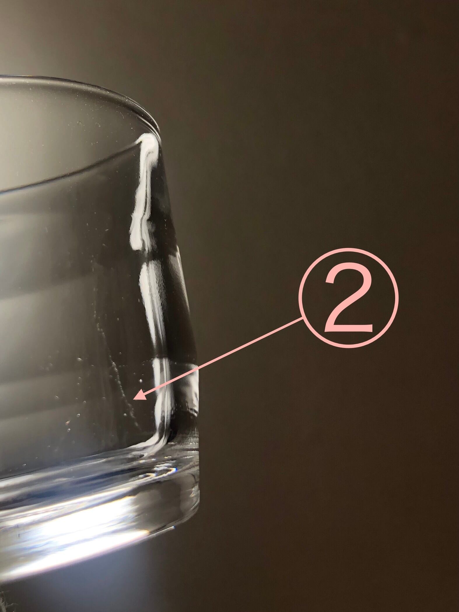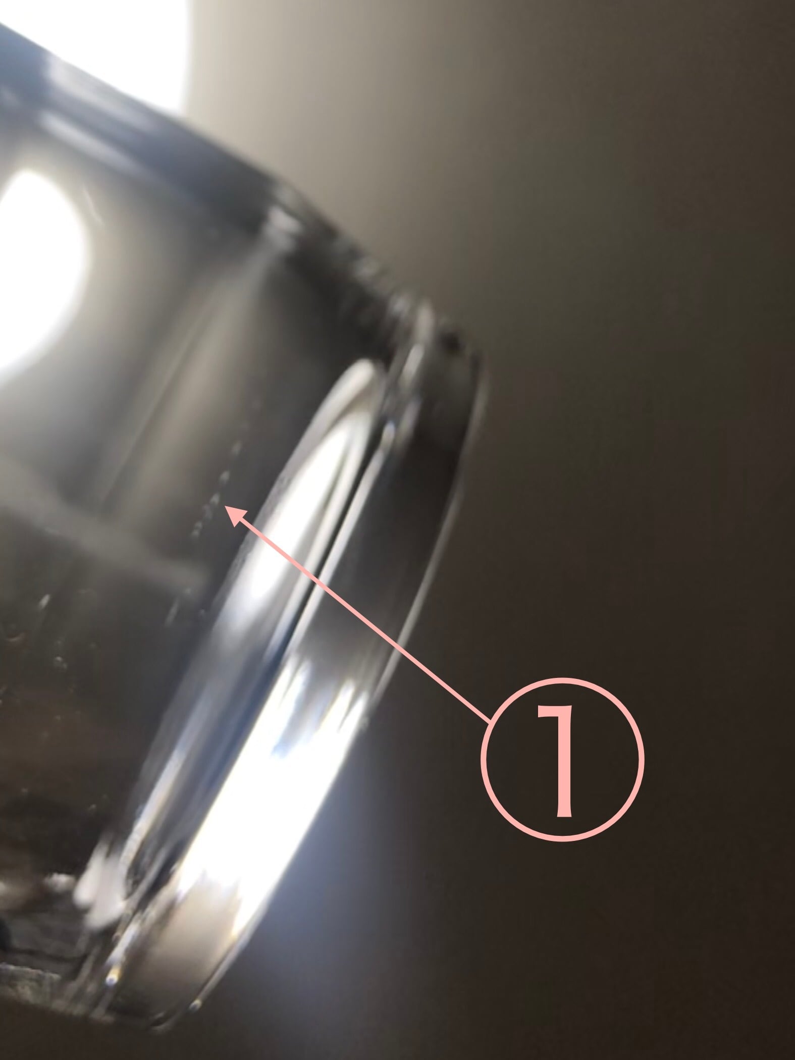 製造時に生じるガラスの中に含まれる極小さな泡のような筋状のものや、小さな気泡、ガラスの揺らぎがみられますがその他特筆するような傷や汚れはなく大変きれいな状態で使用感もほとんど感じません。