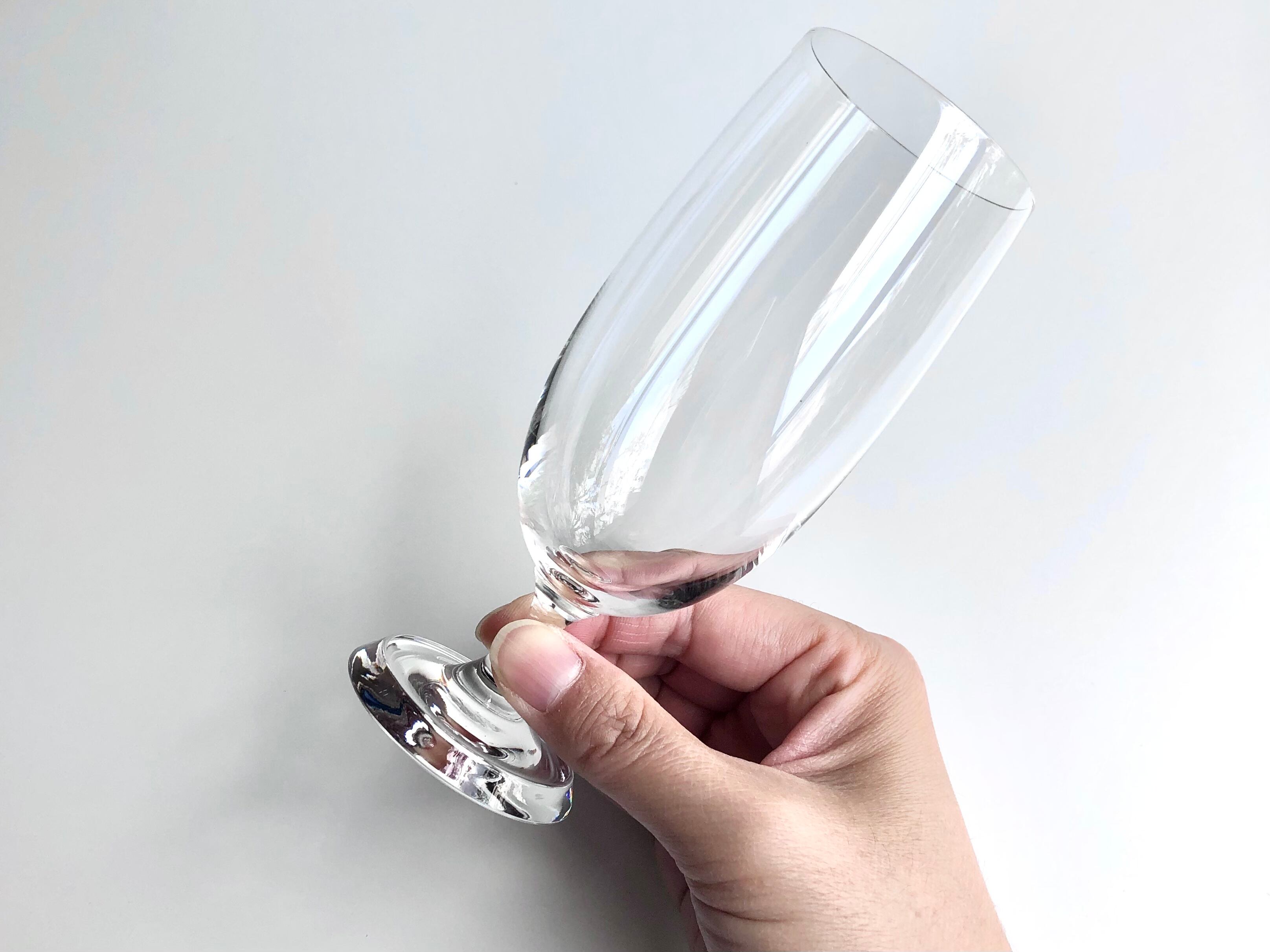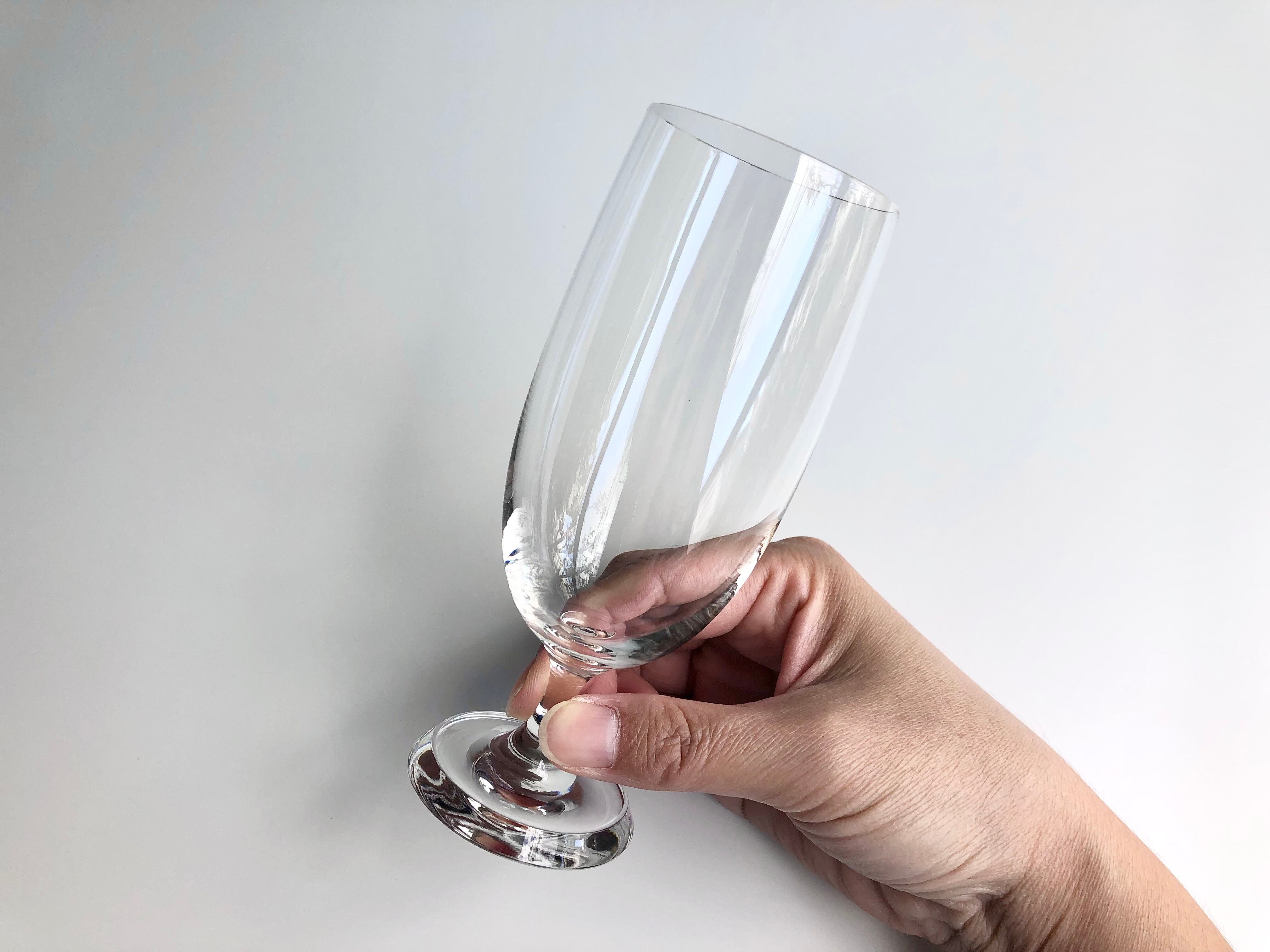 マウスブローの型吹きで製造されたうすはりのボウルに短めのステムがどこか親しみやすく、フットはリムを高くし少し厚みを持たせたプレートのようなデザインで、ボウルの柔らかな曲線からフットまでの流れにヴィルカラらしい個性と美学を感じられる逸品です。