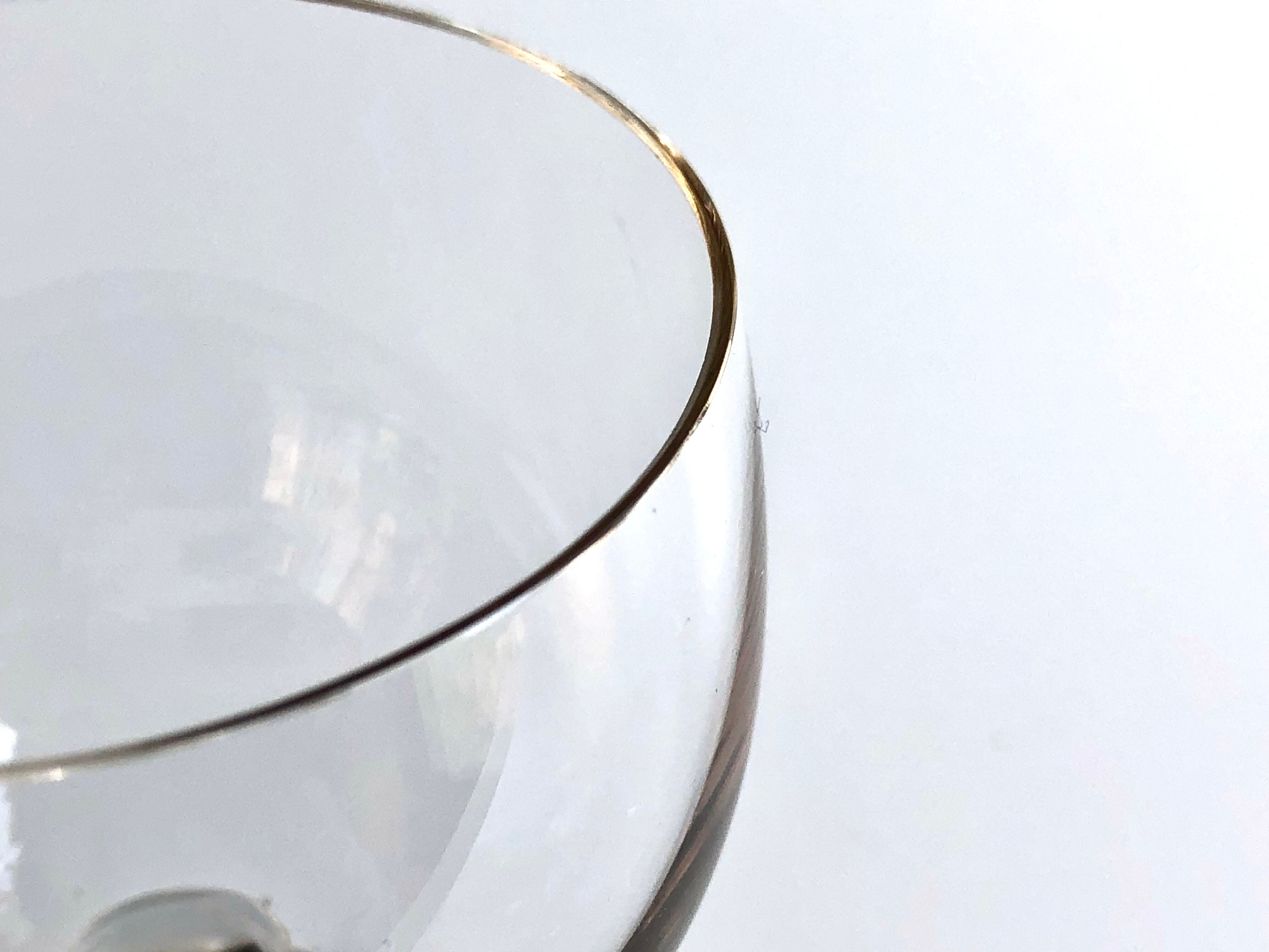 製造段階のものですが、僅かな気泡やグラスの口をカットする処理によって、口の内側に小さな削れまたは窪みのようなもの(光に透かしてよく見なければわからないような極小のもの)が生じることがございますが、正規の製品として販売されていたクオリティに問題のないものです。