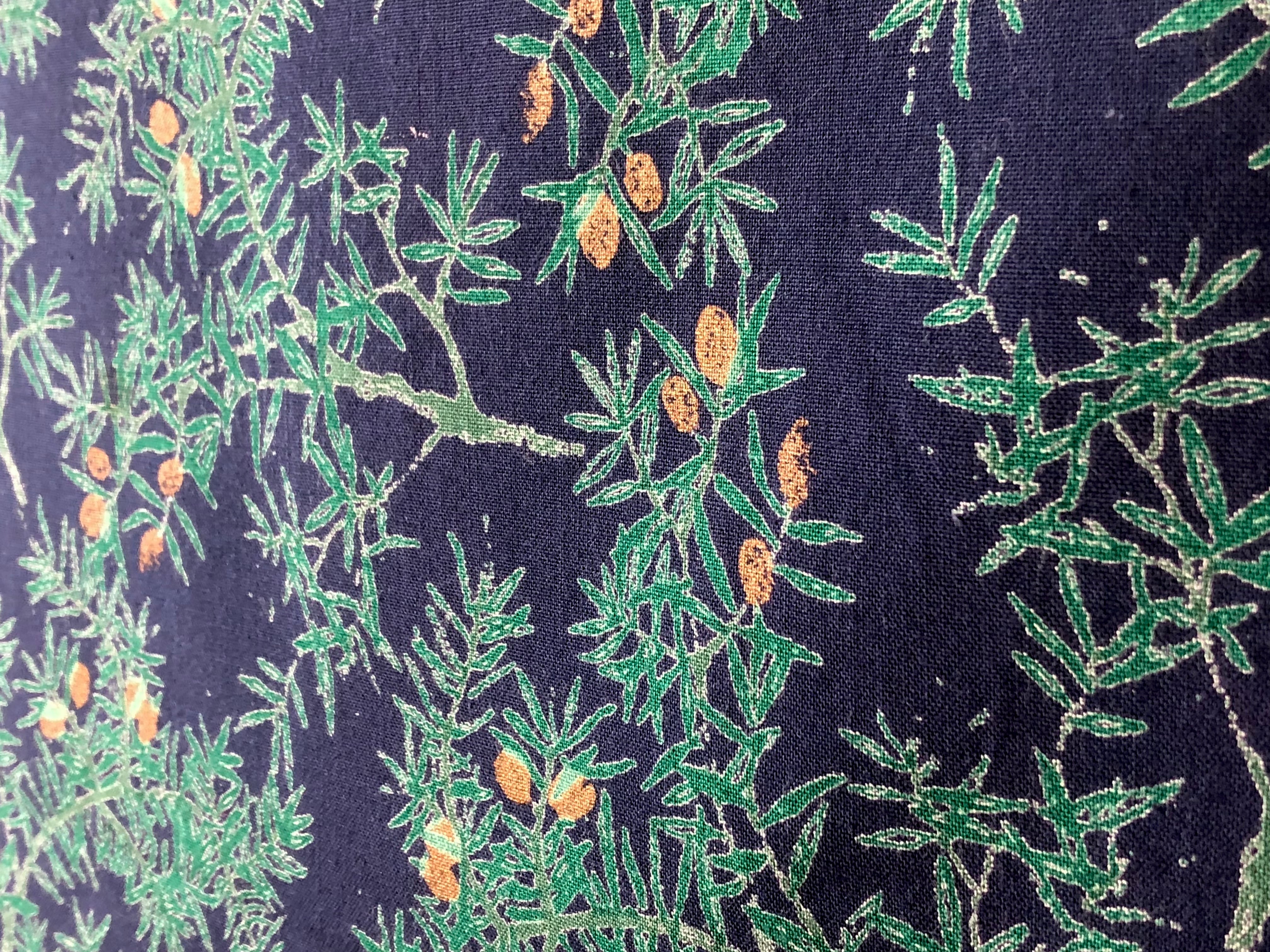 ヌミとは、フィンランド語で植物のエリカを指す言葉なのだそうで、エリカの細かな葉が繊細なタッチで生地いっぱいに描き出されています。